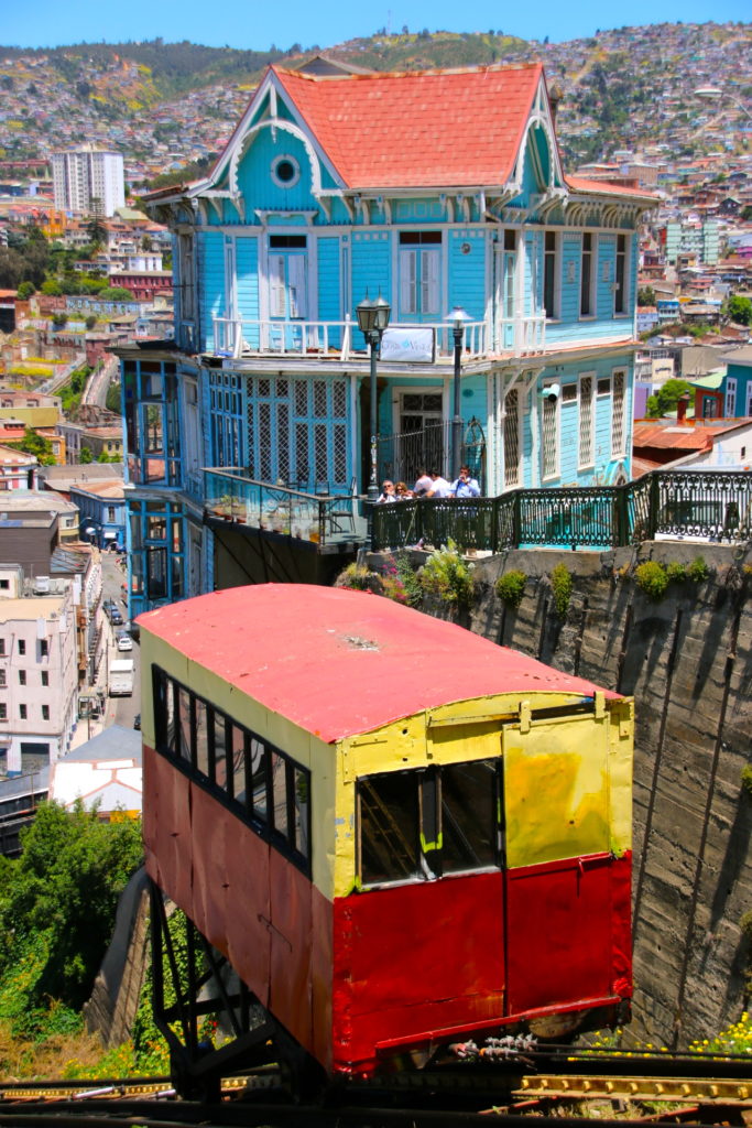 Nous, nous avons choisi la marche et les nombreux ascenseurs de la ville: de vieux funiculaires en bois pour découvrir les différents quartiers de Valparaiso! Magnifique…