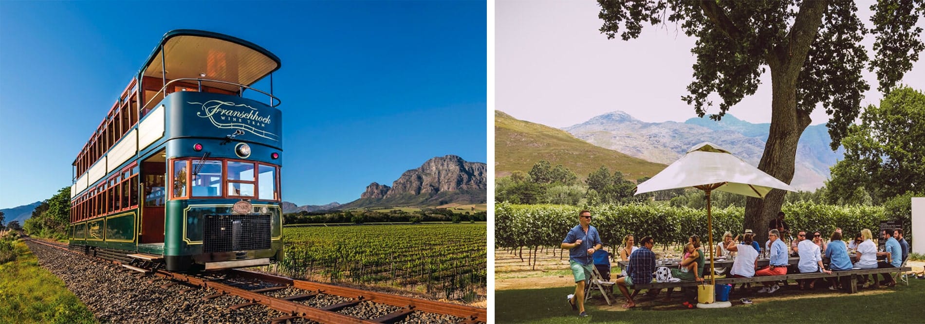 Through the wine streetcar tour of Franschhoek, discover this picturesque valley, its rolling vineyards, beautiful scenery, hospitality, fine cuisine, fine wines and 300 years of history.