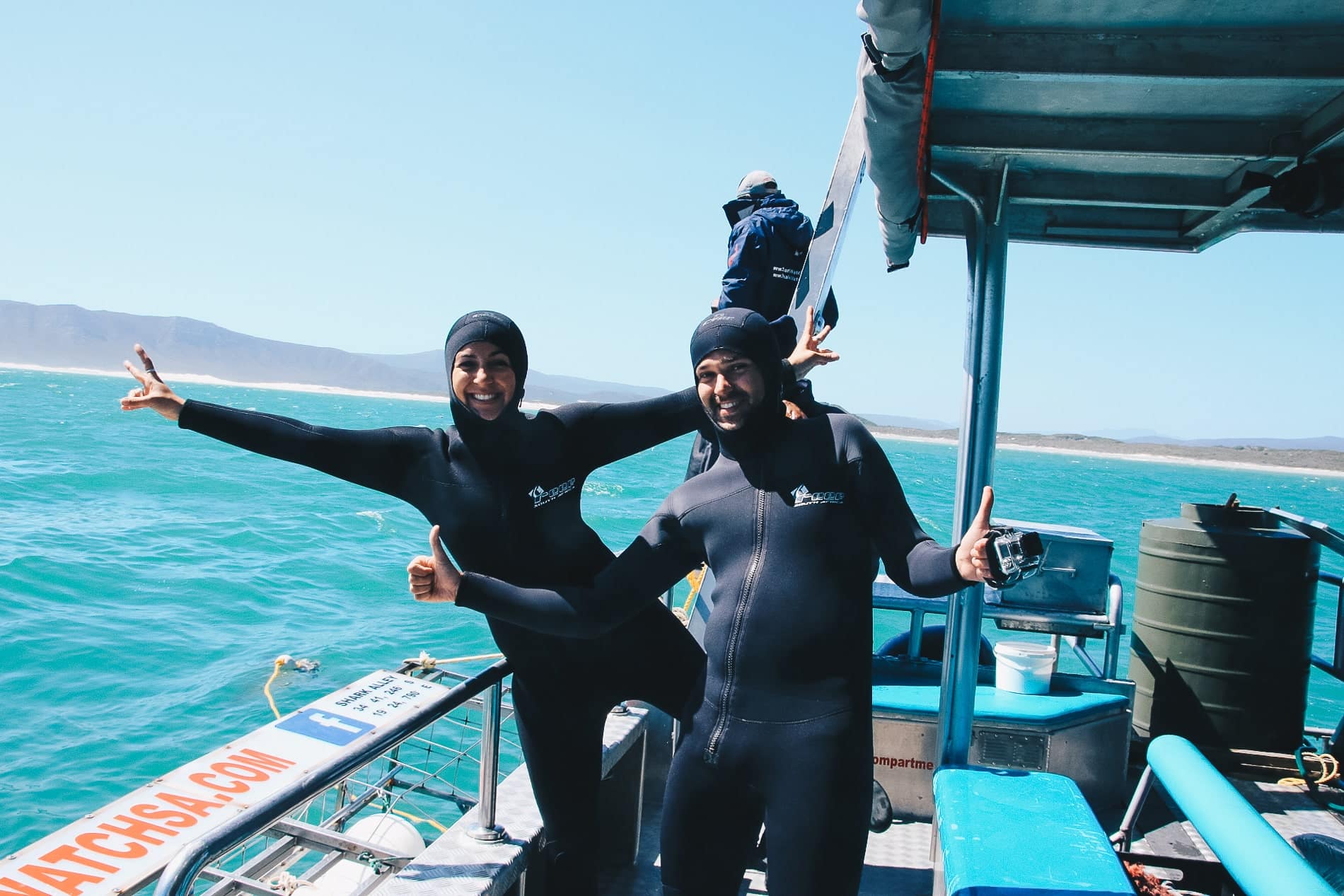 In terms of visibility, the best time to observe the white shark is in winter, in June, July and August. The water is clearer, sea lions colonize the coasts more, which favors hunting and therefore the presence of sharks. We tested the activity in February 2015. Conditions were not the best: strong winds, rougher seas and reduced visibility. At this time of year, it’s harder for boats to get out to sea because of the swell! The day before our arrival, the outing had been cancelled.