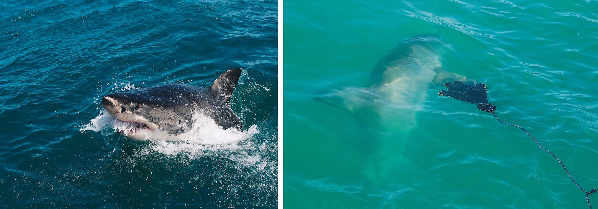 It seems that in Australia, the phenomenon is a little different because the cage is not on the surface of the water but 30 meters below. Sharks are therefore much more zen and therefore more natural.