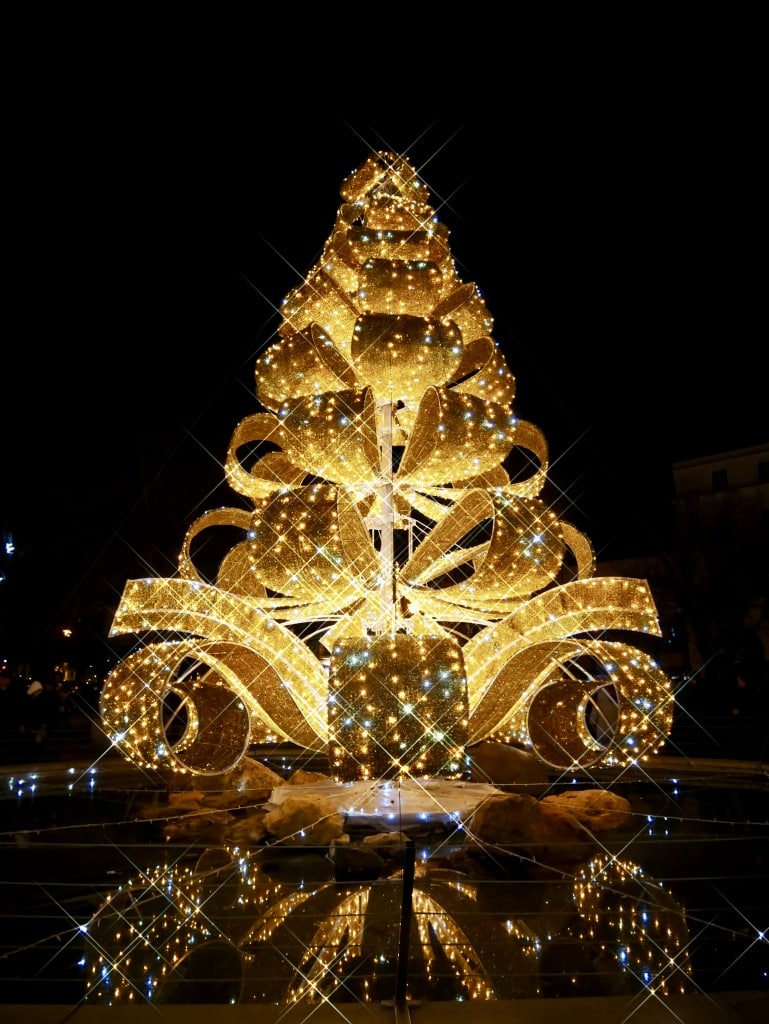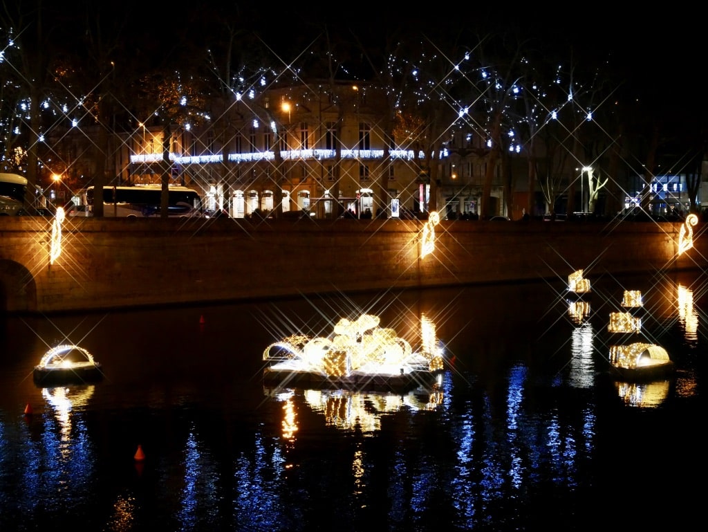 A new theme is chosen every year, and 2016 was all about the Ribbon, delicately sprinkled with snow. The Aristide Briand Bridge was a particular highlight, with its giant glittering arches, floating light structures scattered across the river, and colorful water jets dressing up the Mayenne in light! A special highlight is the huge ribbon fir tree in the little square, Laval, which is decked out in an enchanting array of gold and silver lights.