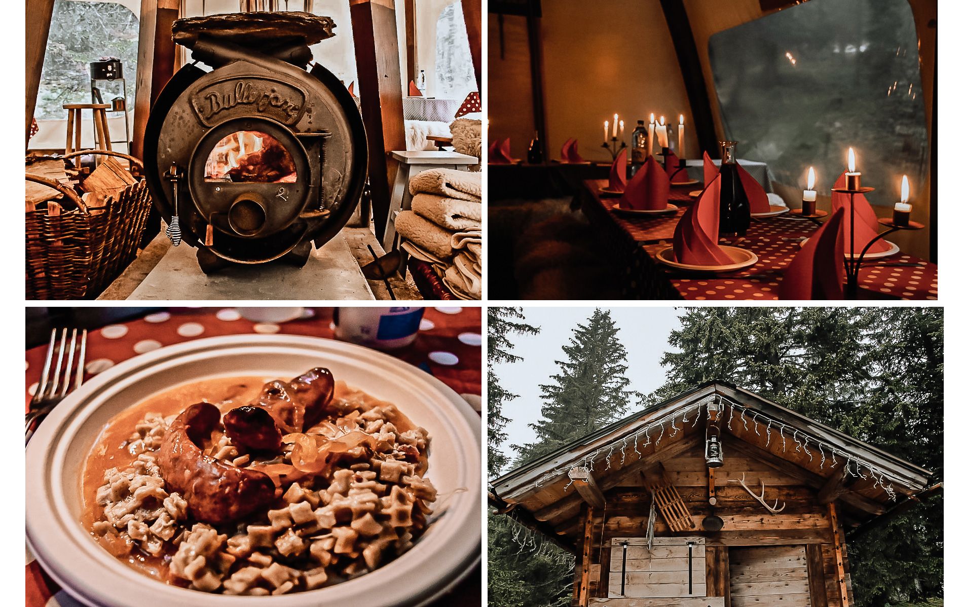Once night has fallen, the warm evening can finally begin in the main 50m2 altidome. On the menu: a traditional mountain and Savoyard dinner with cheese, of course! The meals are prepared by the resort’s own chef. We tasted Reblochon croquettes, with delicious creuzets, small square pasta made from Savoyard white flour or buckwheat flour. Rustic and unusual, they lend themselves deliciously to all kinds of gratin dishes. Delicious! For dessert, it was rhubarb or apricot tart!