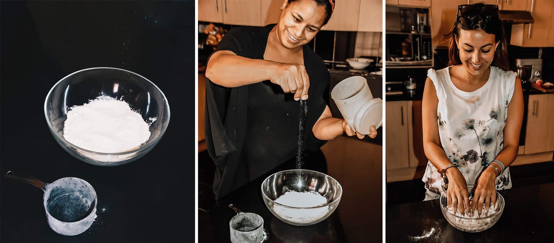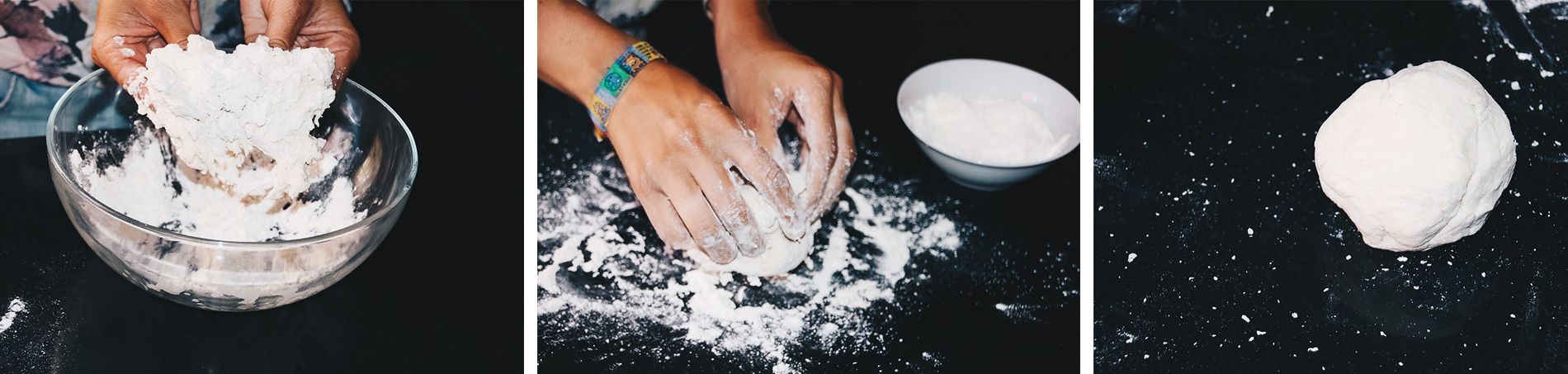 - Mix 250 grams of flour and 12cl of water to make a dough. Work it until it no longer sticks.