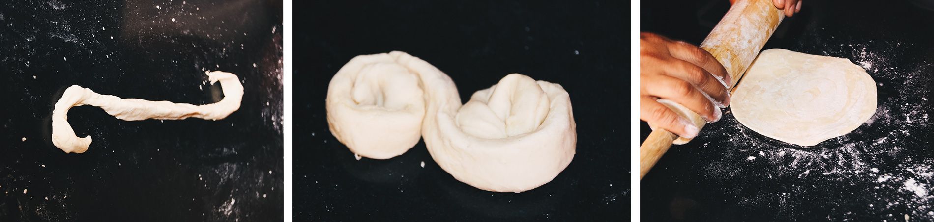 - Take out the rotis and roll them out on flour to form a fine dough.