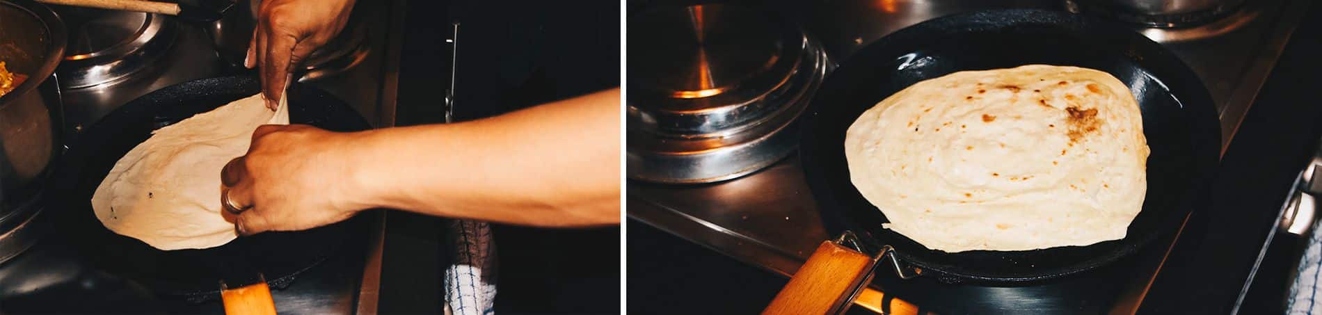 Rotis are also known as chapati in India. It’s a kind of unleavened bread from the Indian subcontinent that we eat like bread here. They go well with all sauced dishes.