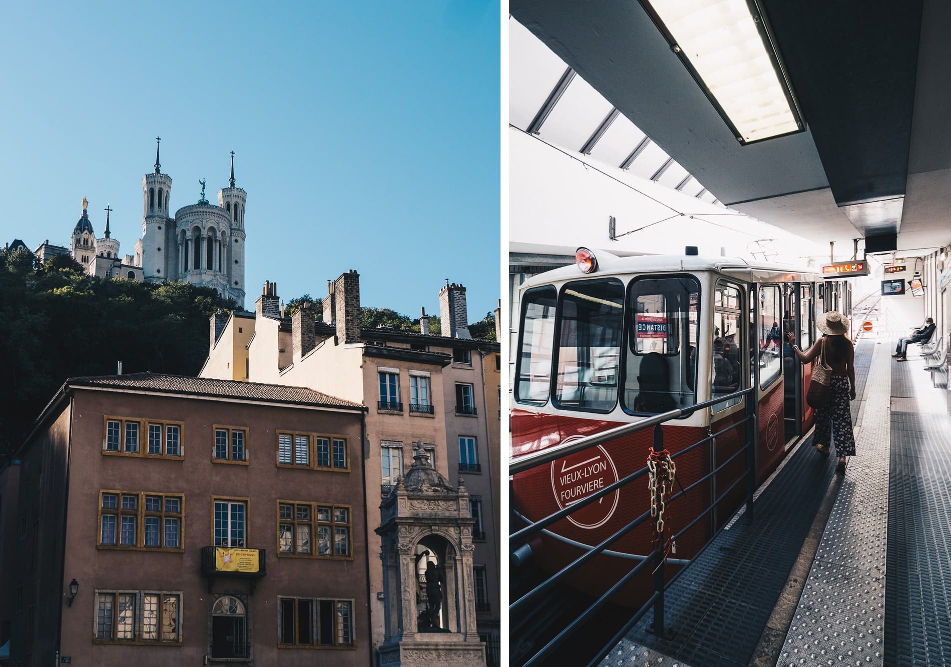 - Paid and quiet : by taking the modern, old-style funicular from the station « St John’s Cathedral ». For 2€/p and in a few minutes, you reach the hill (free option if you have the Lyon City Pass).