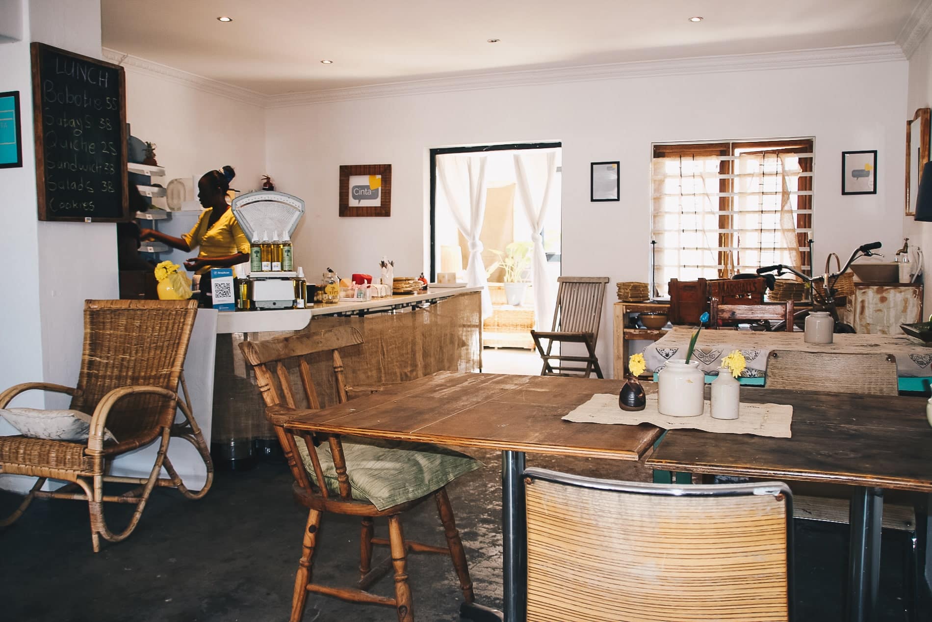 We stopped off for a few hours at Cinta café, just across the street from the Old Biscuit Mill, because we fell in love with the place: a boutique offering fresh fruit juices in an ultra-relaxed atmosphere with a decor mixing salvage, modern and wood. Everything we love!