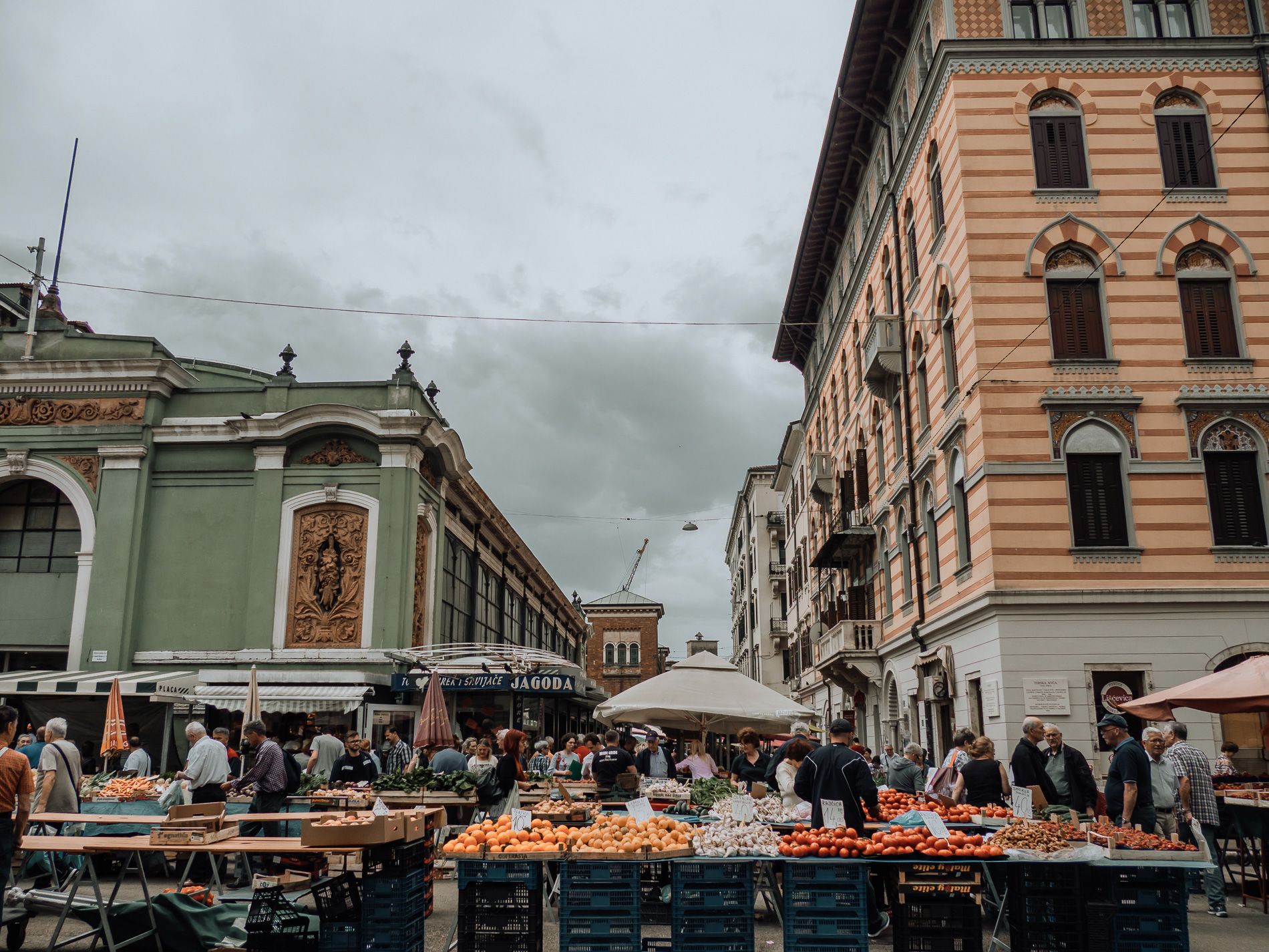 Rijeka, située dans la baie de Kvarner, n’est pas une grande ville mais tout de même la 3ème agglomération (143 000 habitants) et la principale ville portuaire du pays. Rijeka qui signifie « rivière » en croate, a bâti sa richesse grâce à son port qui fût sous l’empire austro-hongrois, un des plus gros port de marchandises d’Europe. Aux premiers abords, la ville ne nous attirait pas mais le principal intérêt de Rijeka est son très beau marché à ne pas manquer situé autour des vielles halles datant du XIXe siècle. Vous y sentirez l’esprit latin de cette ville c’est incroyable, ici pas de tourisme de masse mais que des locaux! Sur les hauteurs, découvrez Trsat, et son château offrant une vue sur Rijeka, cela vaut également le coup. Faite un tour dans la principale rue piétonne et commerçante de Rijeka, on y trouve des boutiques et des cafés. De nombreux événements sont organisés ici et dans la ville tout au long de l’année comme des festivals rock. Et oui, la vie nocturne est également très animée à Rijeka. Les bars et les clubs sont ouverts jusqu’au matin.