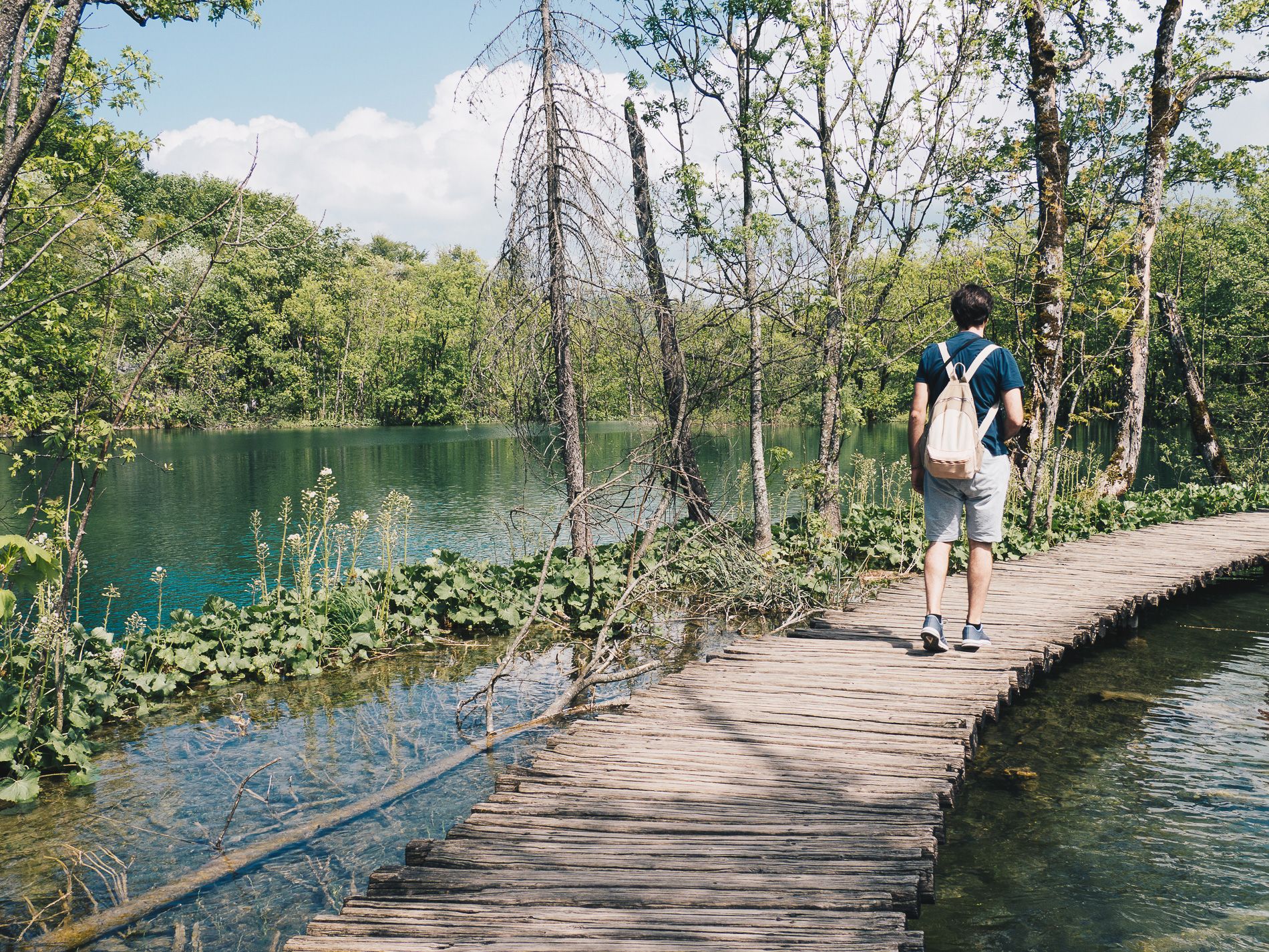 Il existes au total 8 parcours: ceux spécifiques aux lacs supérieurs, ceux spécifiques aux lacs inférieurs et ceux communs aux deux parties. Des chemins de rondins de bois sont construits pour passer d’un côté à un autre. Vous trouverez le descriptif de ces parcours sur le site officiel du parc national de Plitvice. Nous vous donnons ci-dessous quelques idées de parcours dont ceux que nous avons fait. Il est difficile de vous suggérer l’itinéraire le plus adapté à vos envies alors posez-vous la bonne question: quels sont mes objectifs ? mes contraintes ? Combien de temps ai-je sur place ? Est ce que nous voulons faire une longue ou courte randonnée… ?