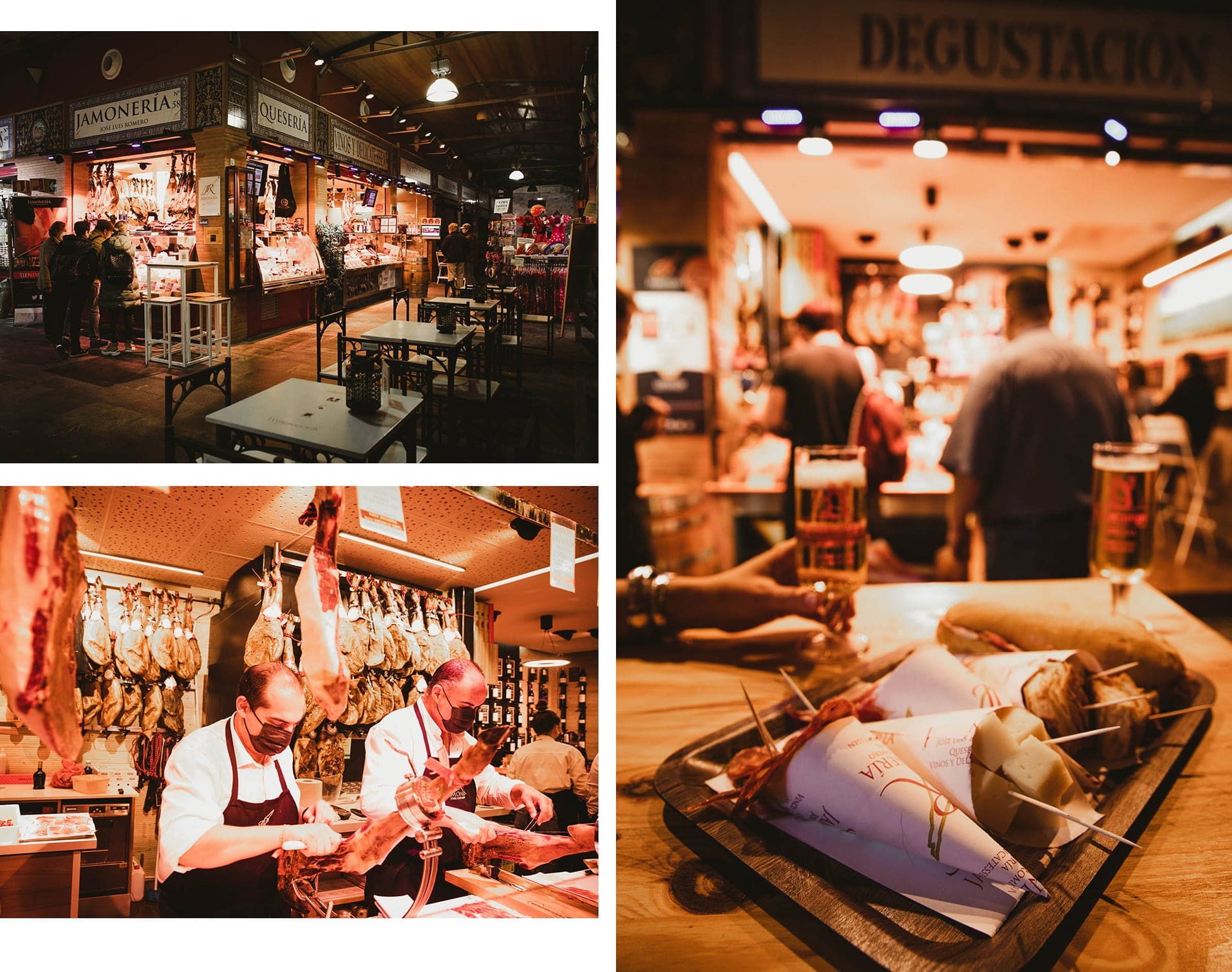 L’autre intérêt de ce quartier est son marché, « el Mercado de Triana » l’un des plus anciens de la ville, situé au pied du pont de Triana et facilement reconnaissable avec ses devantures et dômes en céramiques. Vous pourrez y déguster au numéro 59, le fameux bocadillo (sandwich et au jambon ibérique) mais également du chorizo, des fromages, des chicharones en sirotant un vin rouge andalou ou une bonne bière. On a trouvé le meilleur endroit pour goûter à toutes ces spécialités, rendez vous sur le stand à côté de Pescaderia el Pipa. Les tables mange debout partent assez vite aux heures de pointe.