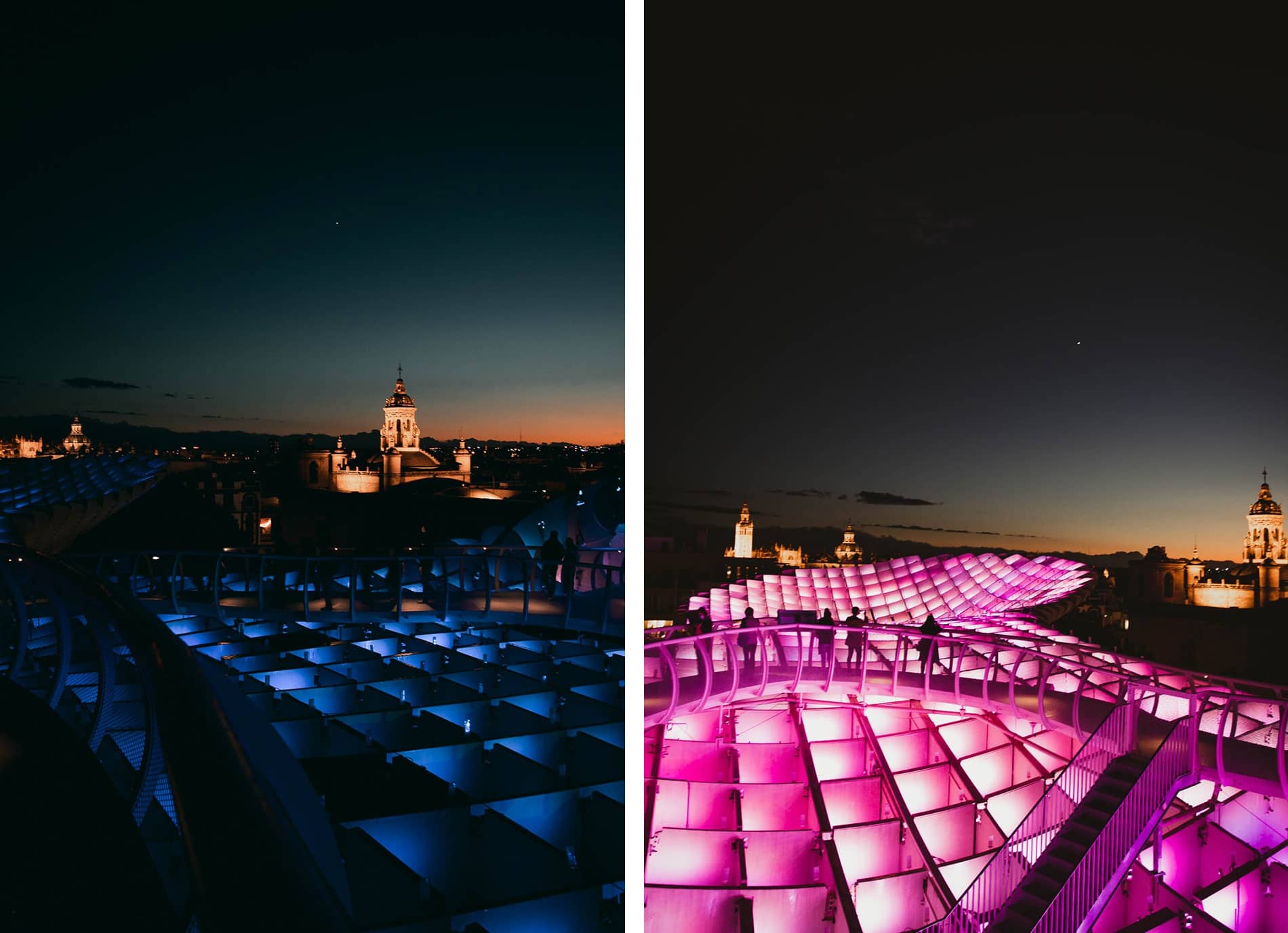Sachez qu’en venant entre 17h30 et 18h30, le tarif est moins élevé. Cela vous permet d’attendre la tombée de la nuit en profitant du coucher du soleil sur les toits de Séville tout en attendant la féerie des éclairages de nuit. Bien évidemment, cela est uniquement possible en hiver car à Séville, la nuit tombe plutôt vers 18h alors qu’en plein été il faudra attendre environ 22h.