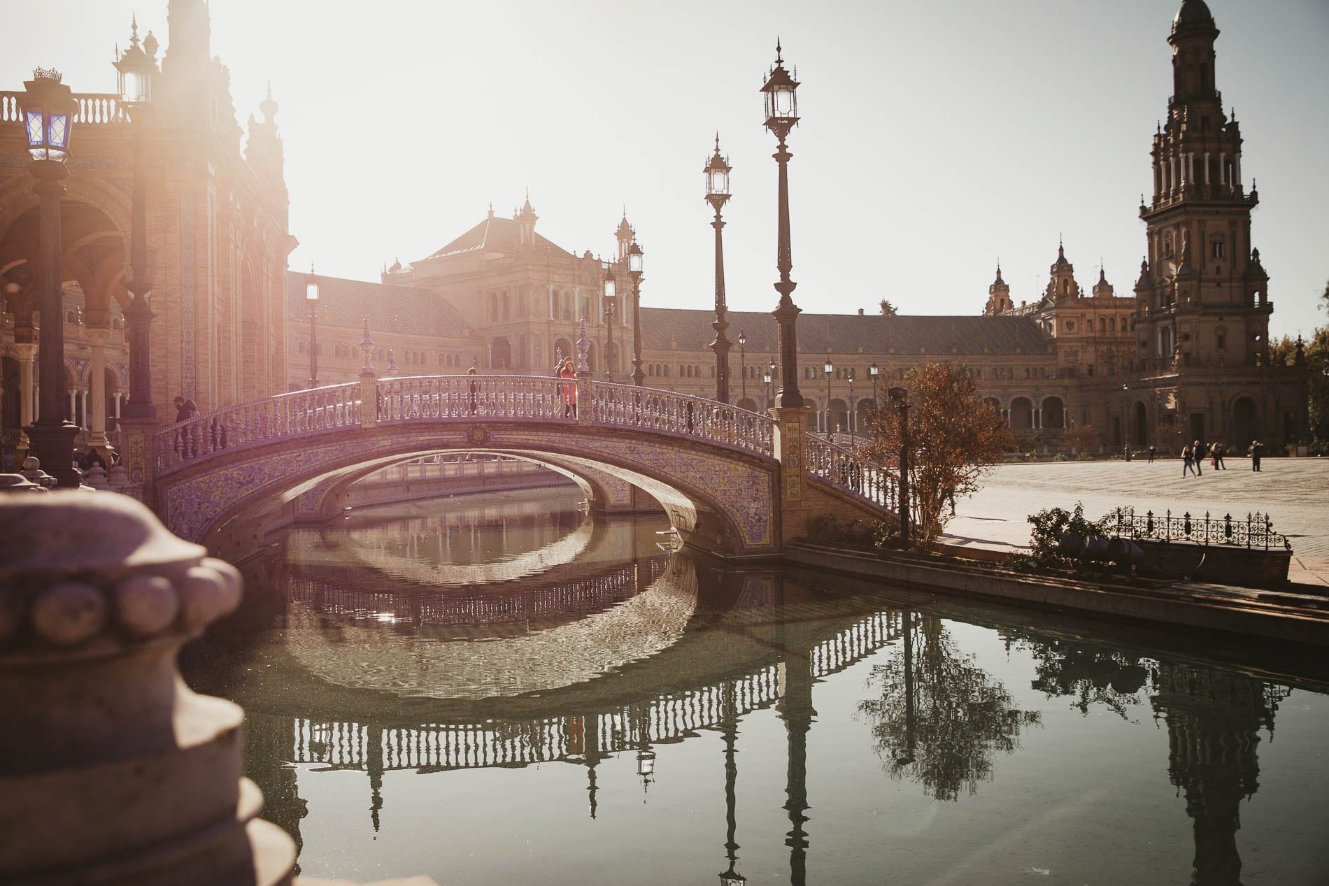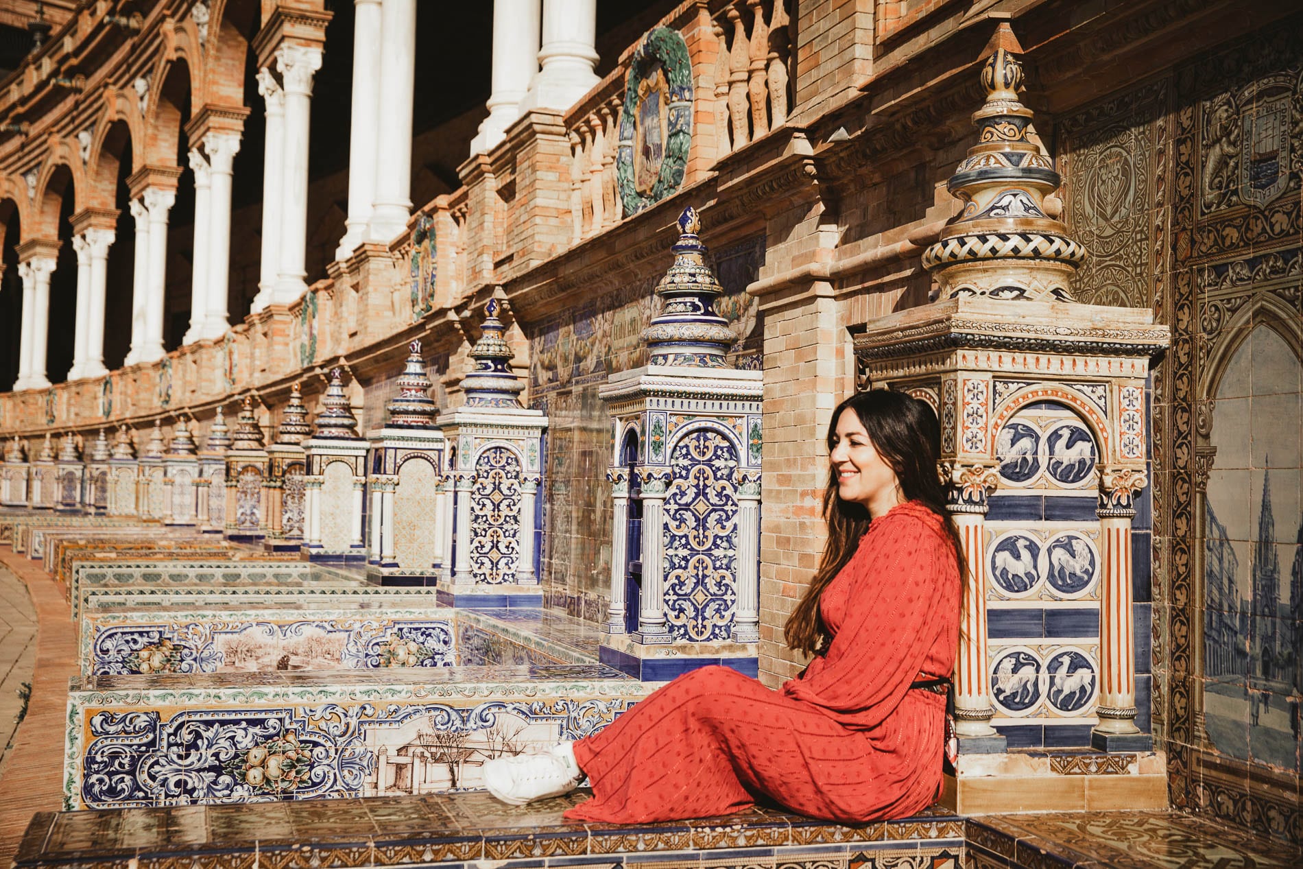 Crée à l’occasion de l’exposition ibéro-américaine de 1929, ce bâtiment imposant et cette place en demi-cercle est absolument majestueux et le plus connu de Séville. Le choix d’organiser cet événement à Séville et non à Madrid est certainement du au fait que Séville était le point de départ des expéditions parties pour l’Amérique et surtout la porte d’entrée des marchandises venues des colonies. Ce site de 170 mètres de diamètre, est bordé de bancs en céramique peinte représentant l’Espagne avec ses 4 royaumes et ses différentes provinces accueillant ses anciennes colonies. On y retrouve les codes de l’architecture andalouse avec notamment la céramique qui est beaucoup utilisé. La place commence à se remplir à partir de 10h le matin par des voyageurs étrangers venus des 4 coins du monde mais les plus belles lumières sont surtout en fin de journée, principalement si vous venez en été. Un choix sera donc à faire entre la fréquentation et la lumière pour vos photos. Autour de cette place se trouve un canal décoré en faïence, et de 515 mètres de long, que l’on peut parcourir en barque, c’est assez touristique et n’a pas vraiment d’intérêt majeur à mon sens.