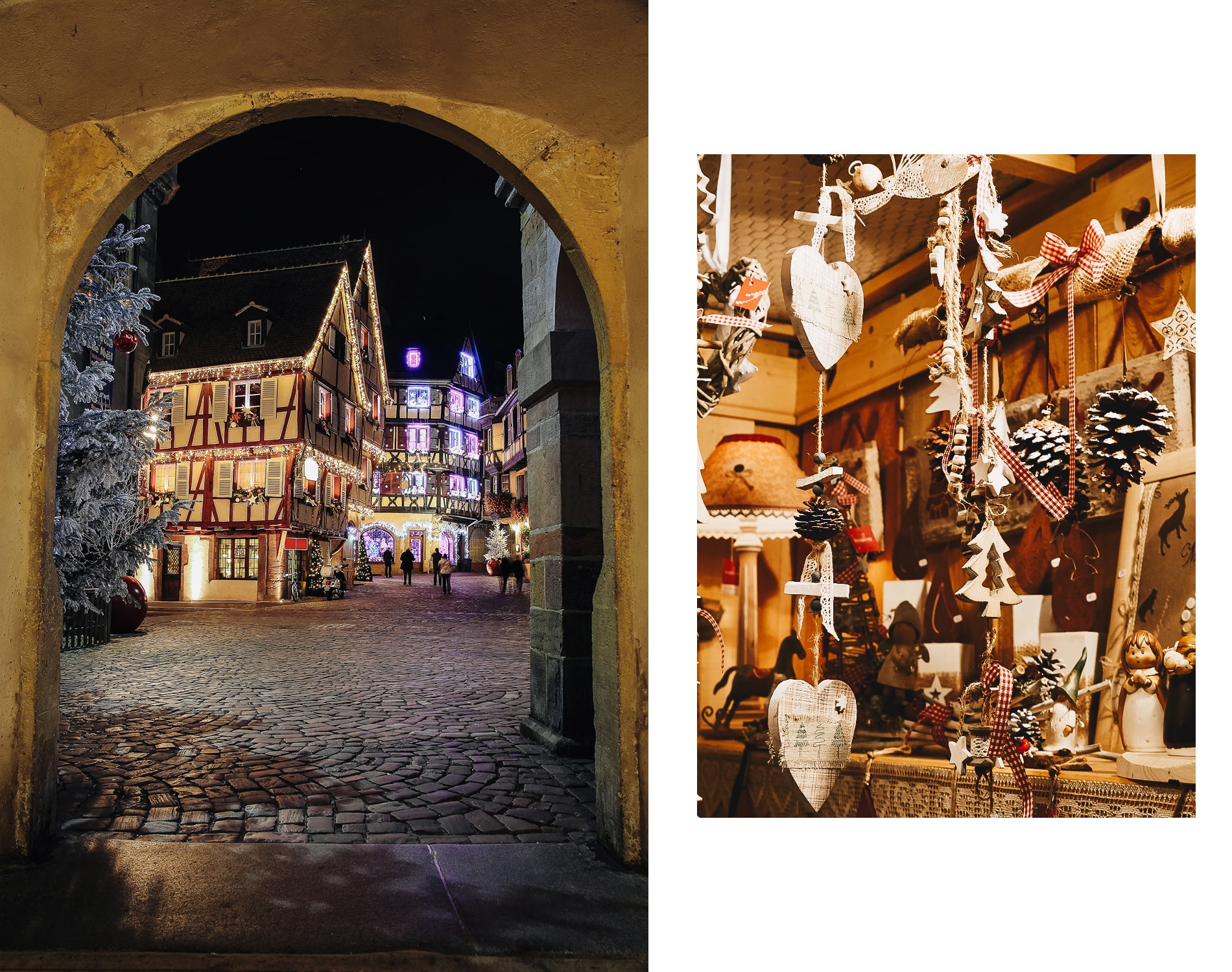 De nombreux Alsaciens nous avaient conseillé de visiter Colmar à Noël, et nous comprenons désormais pourquoi. Ici, vous plongez dans un véritable marché de Noël, avec de splendides chalets en bois, des décorations traditionnelles, des tissus locaux et un artisanat alsacien mis à l’honneur.