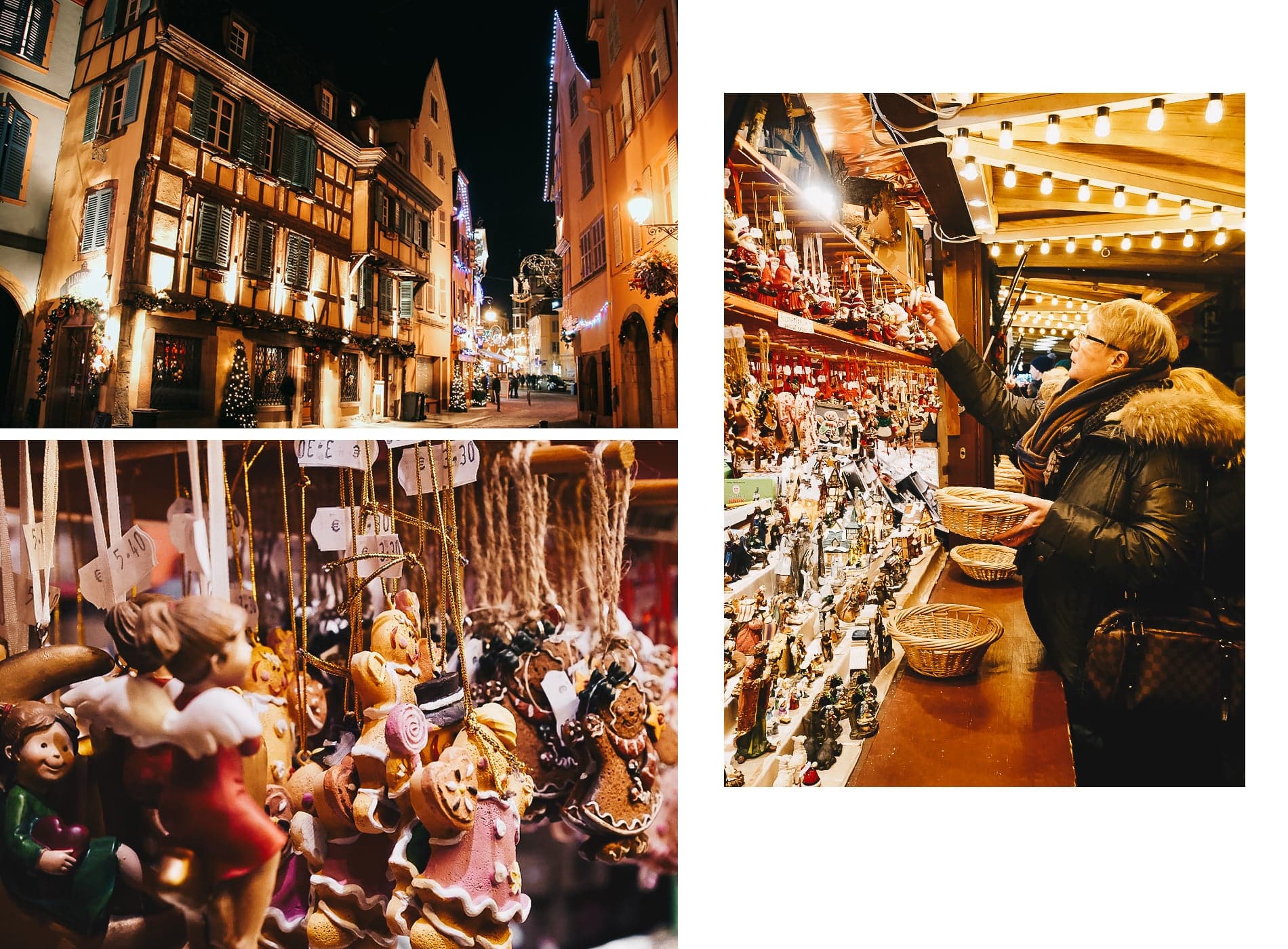 Ce que j’aime particulièrement ici, c’est cette manière qu’a Colmar d’éclairer chaque façade comme une œuvre d’art. Le marché des artisans, près du musée Unterlinden, est l’un des plus beaux pour découvrir de vraies créations locales. Et si vous aimez les spécialités, ne manquez pas le marché gourmand : tartes flambées, vin chaud blanc, bredeles, tout est délicieux.