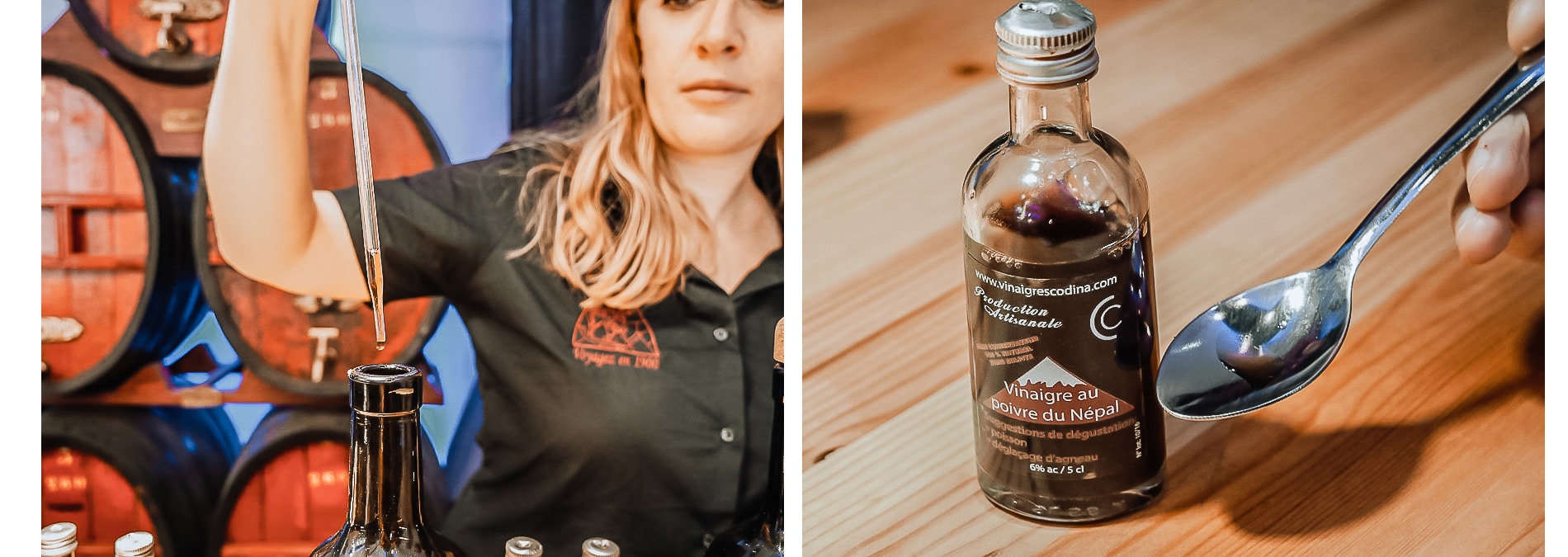 Une partie du musée met également en valeur le travail de Cyril, à savoir produire du vin mais également du vinaigre. Mais c’est dans sa boutique créé un peu plus loin sur la place que nous le découvrons. Ce lieu moderne est un espace de vente et de dégustation gratuite de ses produits provenant des 6 hectares de vignes qu’il exploite pour confectionner des vins de caractère ainsi que de superbes vinaigres artisanaux, aromatisés de manières naturelles pour des produits complètement bio.