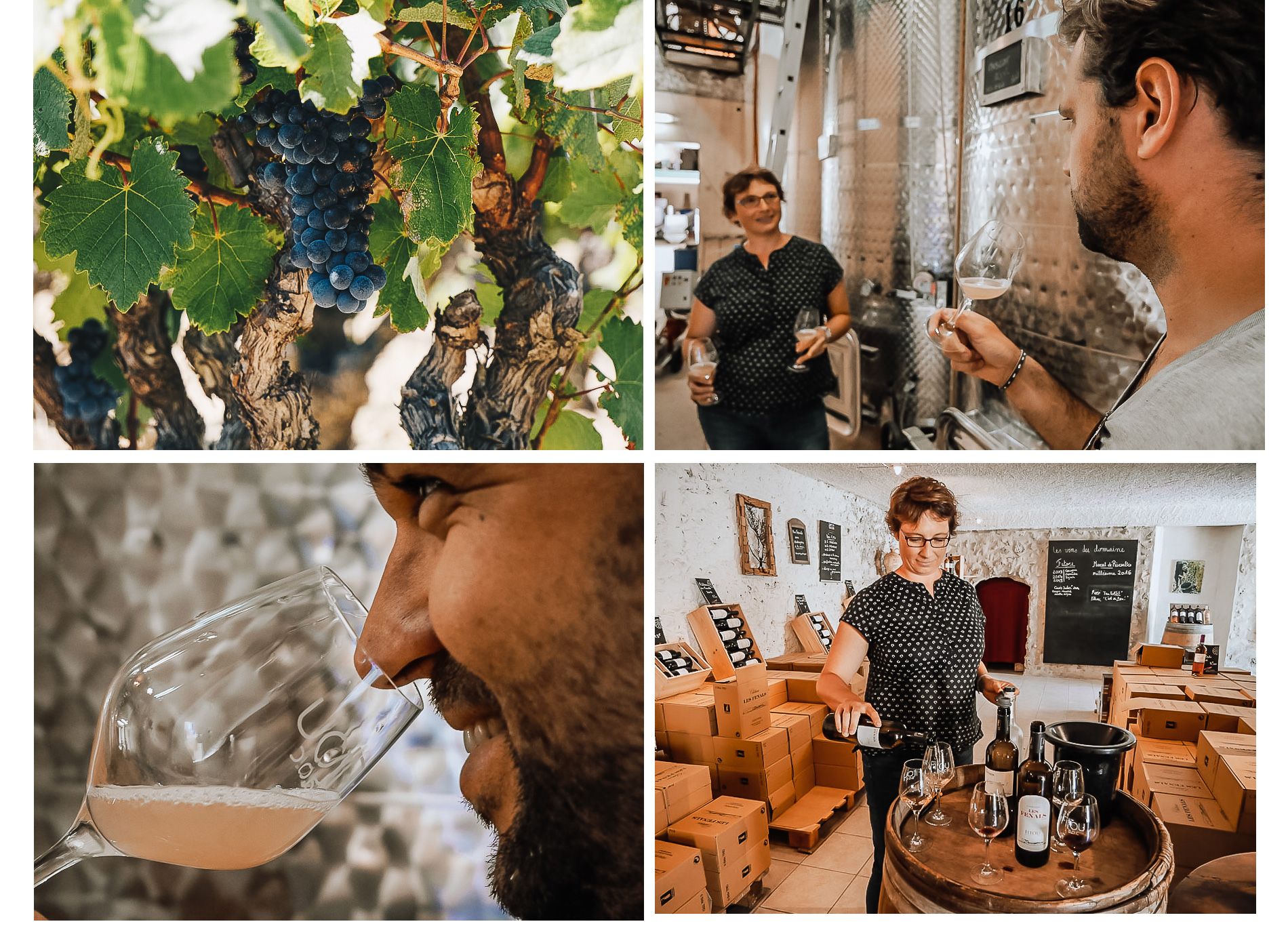 Quant à nous, c’est plus précisément à La Palme que nous avons rendez-vous avec Isabelle pour une visite vigneronne. Cette chouette femme souriante et pétillante, est directrice de Vin4heures. Passionnée de son territoire et amoureuse du vin, elle vous invite à un retour dans les années 50 au volant d’une 2CV, la célèbre voiture de Citroën.