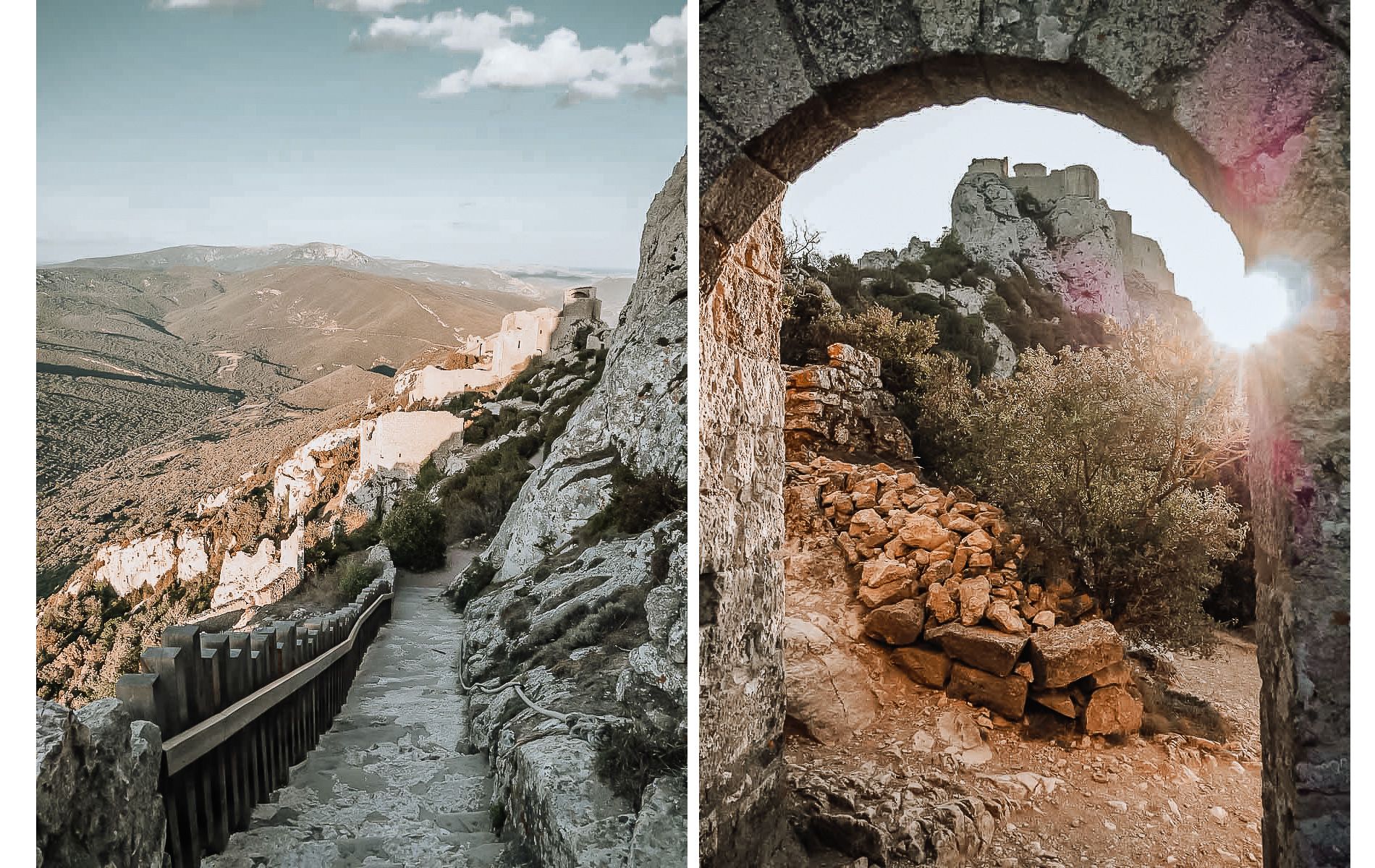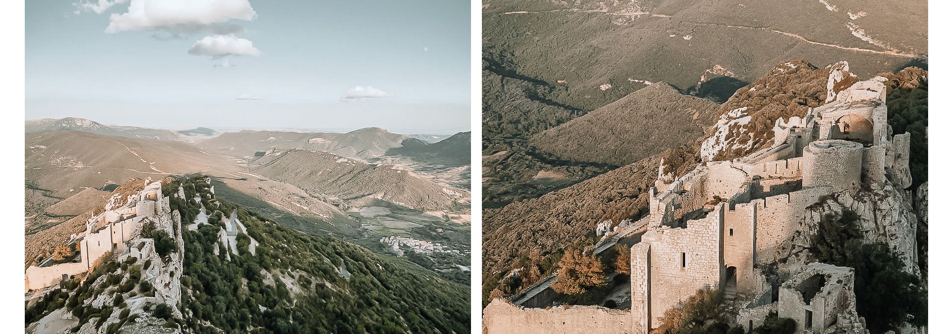 En fin d’après midi, direction le château de Peyrepertuse niché sur le haut d’un pic et autant vous dire que nous étions heureux d’avoir l’assistance électrique. Elle nous a permis de monter le col qui y mène non sans quelques gouttes de sueurs car ne pensez surtout pas que vous n’aurez pas à pédaler avec un vélo électrique…
