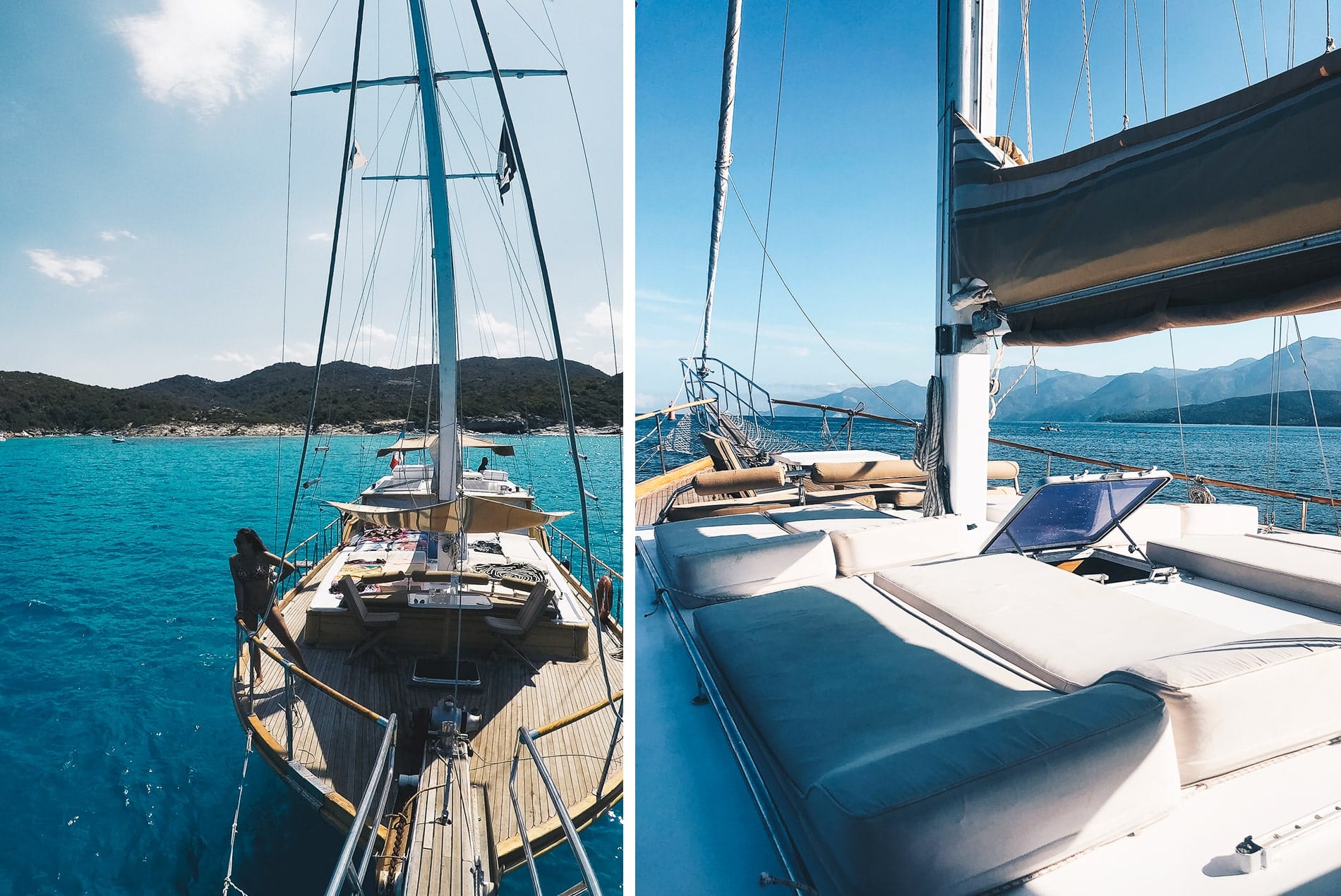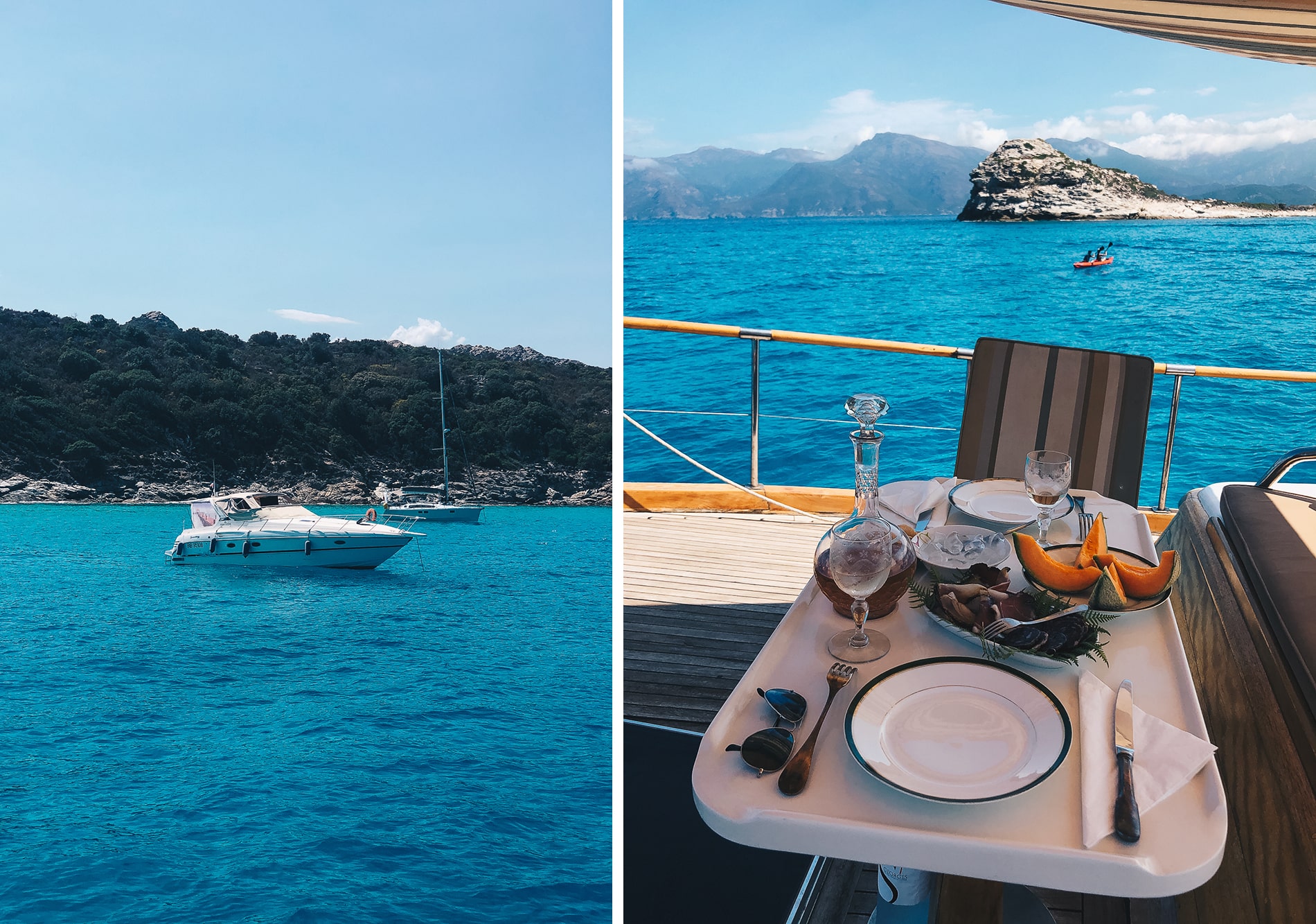 Nous voulions profiter pleinement de cet endroit, c’est pourquoi, nous avons choisi la formule une journée de 7h, comprenant la croisière dans le Golfe de Saint-Florent, pour découvrir la côte escarpée du Cap Corse, le déjeuner typique corse (entrée, plat, dessert, vin AOC Patrimonio en supplément, 25€ la bouteille) en mouillage face à la plage de Lotu, puis farniente et baignade.