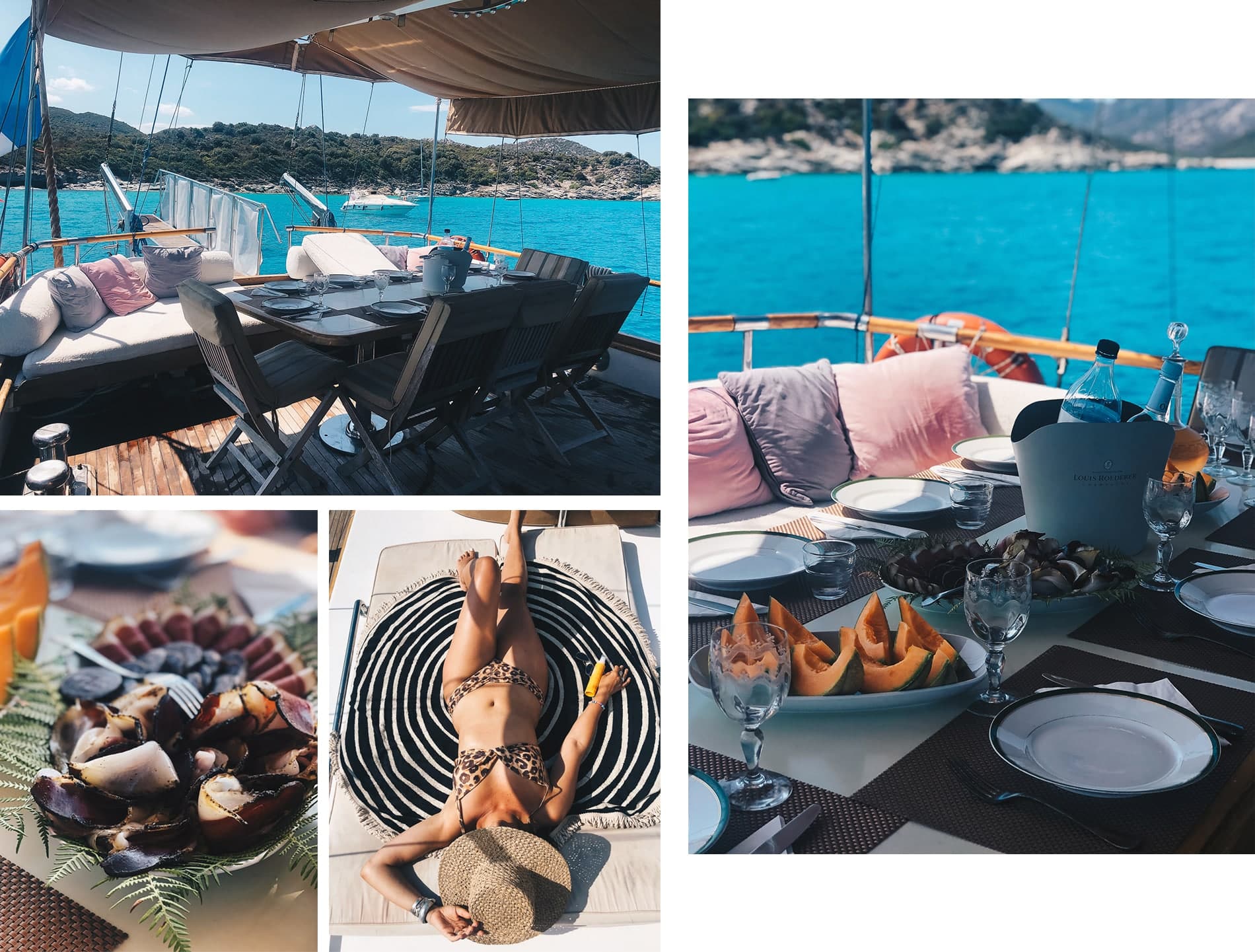 Nous avons passé une super belle journée à bord de ce vieux bateau long de 22 mètres, tout confort, disposant d’un gréement ancien à deux mats, ce qui lui confère un charme fou et qui permet de vivre une expérience exceptionnelle et unique. Il est équipé de deux moteurs marins lui assurant une mobilité optimale. Il dispose d’une échelle de bain latérale ce qui rend la remontée à bord pratique et accessible à tous mais aussi d’un long plongeoir à l’arrière, ce qui a fait le bonheur des enfants et des adultes. Finalement, nous étions à bord en compagnie de 8 autres personnes (un groupe d’amis picards avec leurs enfants) et cela ne nous a pas dérangé. En plus d’être très sympathiques, les amis ont déjeuné à l’arrière du bateau sur la table principale et nous, nous avons eu le droit à notre petite table d’amoureux, à lavant du bateau, dressée par le capitaine.
