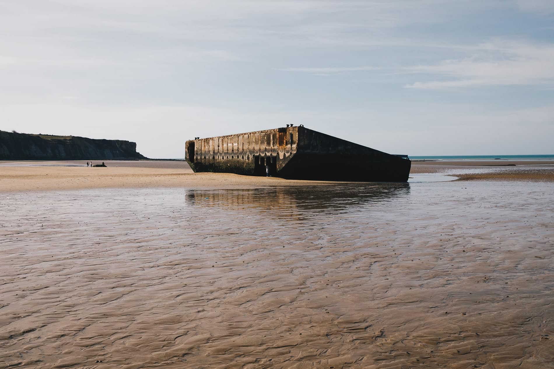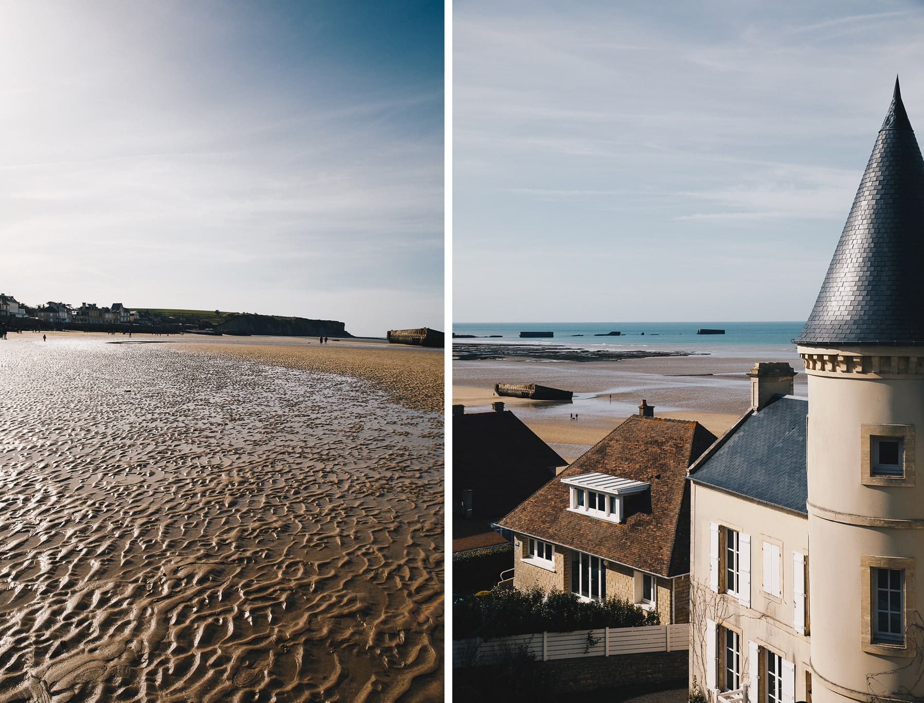 On a poursuivi notre route par un arrêt rapide à Arromanches. Encore une autre plage du débarquement de juin 1944, connue pour les vestiges du port artificiel crée afin de pouvoir approvisionner les troupes débarquées en armes et en munitions. Les images sont assez étonnantes et nous replongent dans l’histoire. Si vous avez un peu de temps devant vous, je vous conseille également de faire un arrêt plutôt en fin de journée sur la plage de Gold beach, non loin d’Arromanches.