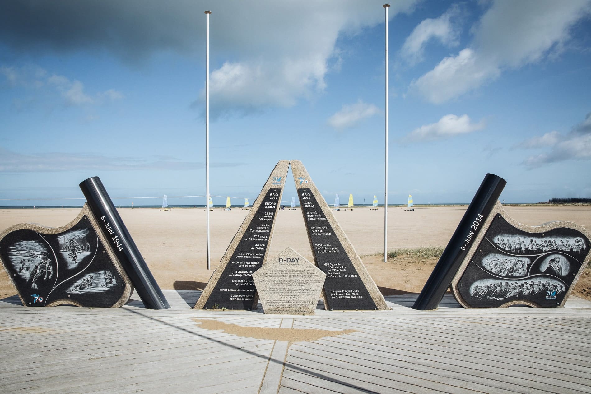 Sword Beach, est le point le plus à l’est du débarquement, à 15 kilomètres de Caen et du Mémorial. C’est la seule des cinq plages du débarquement où débarquèrent 177 commandos français. Elle s’étend sur 8 km de Ouistreham à Saint-Aubin-sur-Mer.
