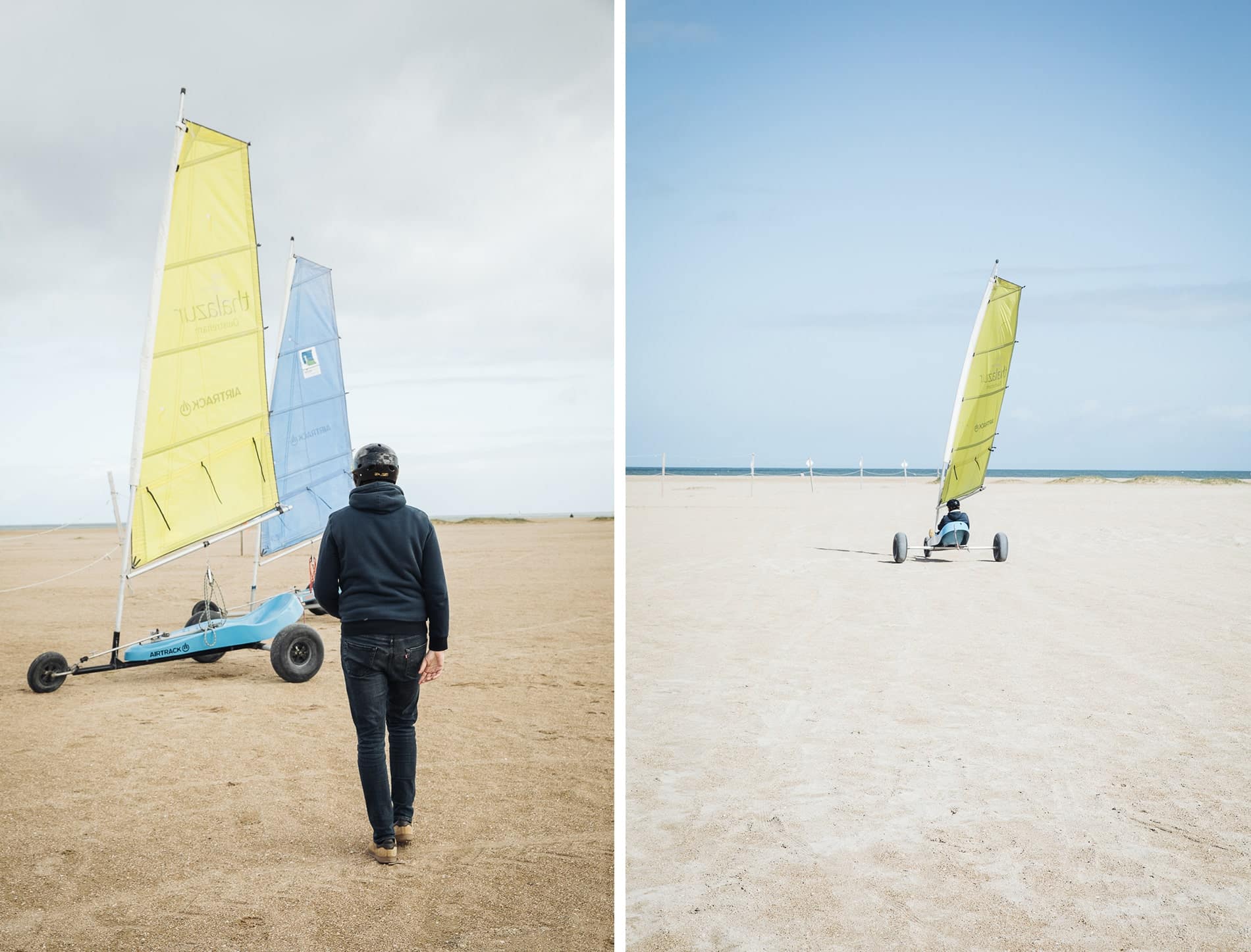 Les grandes plages de sable fin de Caen La Mer ainsi que la météo offrent des conditions optimales pour s’essayer à la pratique d’activités nautiques. C’est à Ouistreham Riva Bella que nous nous sommes rendus pour tester le char à voile. Sensations et vitesse garanties. Après quelques explications sur le sable, Antoine s’est laissé porter par le vent et son char sur un circuit préparé. Comptez 2 bonnes heures d’amusement.