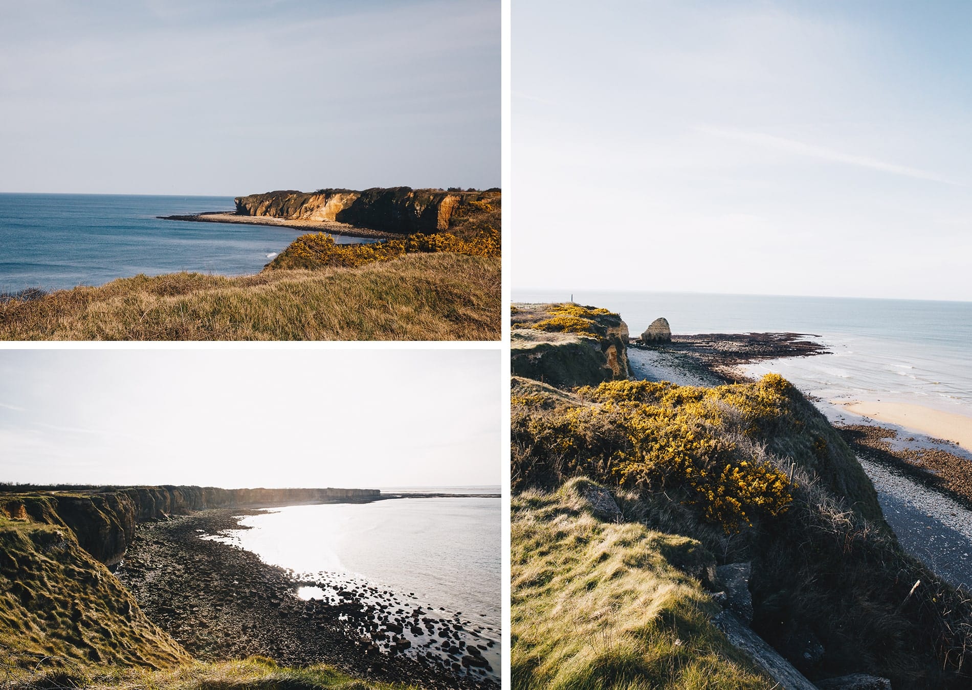 Fin d’après midi à la Pointe du Hoc. Aujourd’hui, ce lieu situé entre les deux plages du débarquement, Utah Beach et Omaha beach évoque ce qu’était une batterie d’artillerie avec son poste de direction de tir, ses casemates, ses abris. Ce fut l’une des batailles les plus difficiles du débarquement et les stigmates sont toujours visibles. Hormis l’aspect historique, cet endroit fleuri au printemps est vraiment beau et les points de vue sur les falaises sont assez chouettes. Les points d’intérêts se font en suivant le sentier aménagé et sécurisé. L’entrée est gratuite mais les pique-niques sont interdits sur le site.
