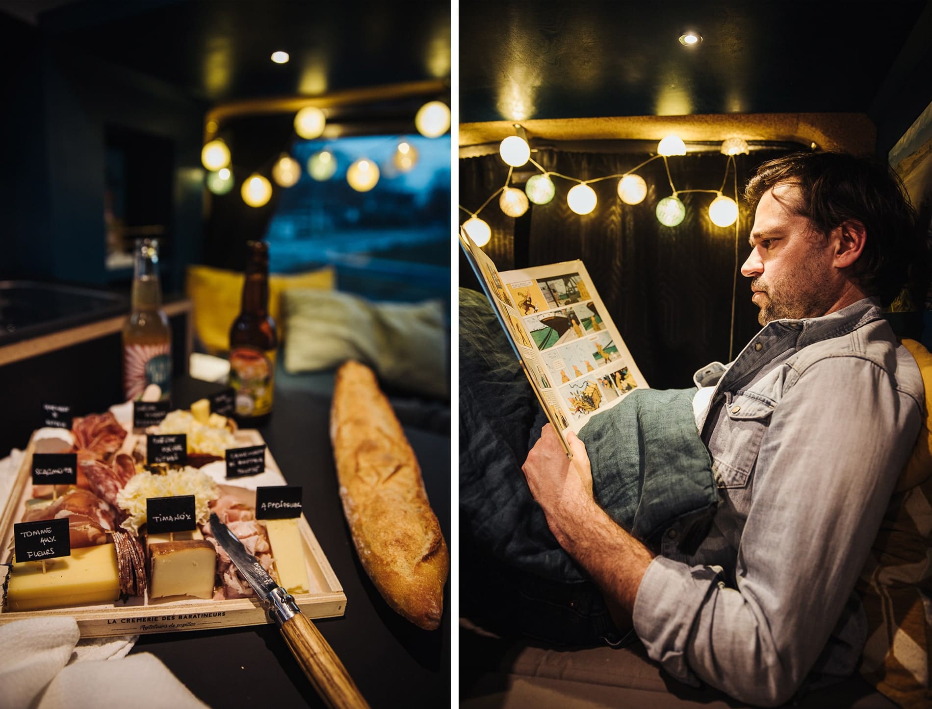 Les intérieurs colorés et vifs ont été pensés et dessinés par Marie, architecte de métier. La décoration est de très bon goût et vous embarque de suite en voyage. Chaque petit espace est bien pensé et optimisé pour pouvoir créer ces vans de qualité. Je vous conseille de ne pas amener trop d’affaires avec vous pour un weekend. Enfin, il faut compter environ 24h à 48h en tant que novices, pour prendre ces marques et ne pas se marcher dessus.