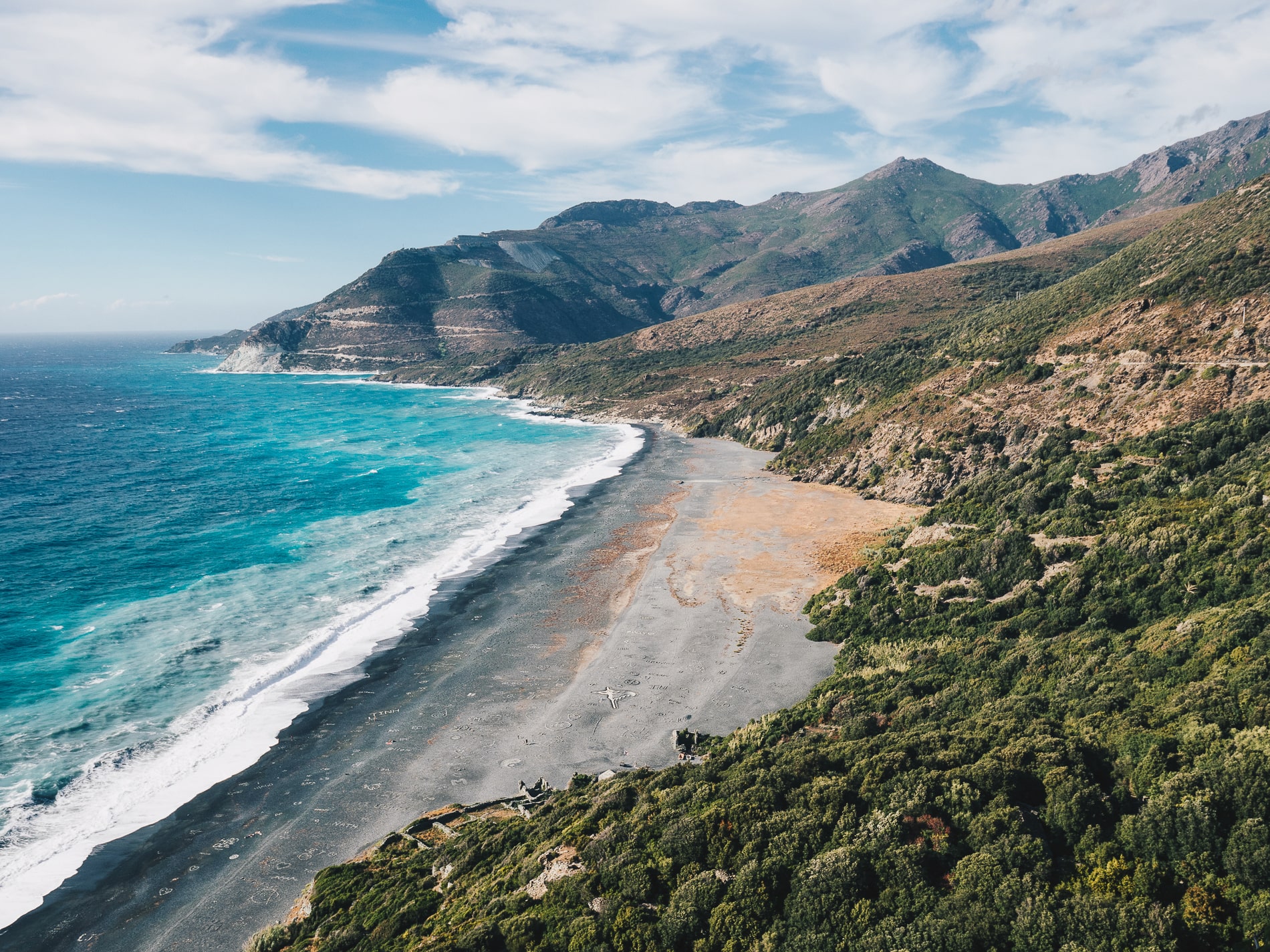 La plage de Nonza est pour nous, la plage la plus originale de la côte ouest de la Corse.