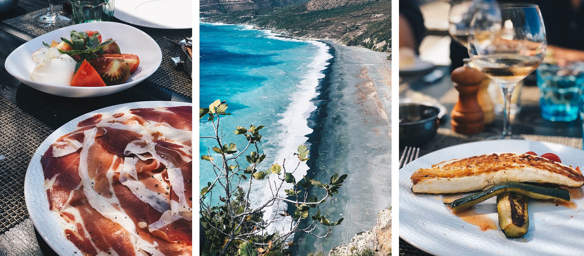 Si vous passer une nuit à Nonza, je vous conseille de réserver impérativement votre dîner à la Table Bocca Fine, la meilleure adresse de l’été. C’est une cuisine de chef, simple et raffinée, vous allez adorer.