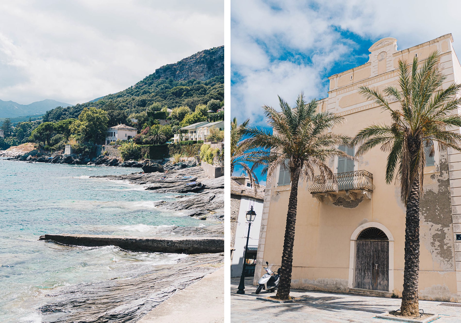 Erbalunga marque le début du Cap Corse. Ce tout petit village portuaire très charmant situé sur la côte est du Cap Corse, a inspiré de nombreux peintres insulaires. C’est un village piéton authentique, très apprécié l’été: on y trouve un large choix de petits restaurants et cafés mais aussi des ruelles pavées, des passages voûtés et une place agréablement ombragée par les platanes et les palmiers. Situé à seulement 10 kilomètres de route de Bastia, le village s’étend sur une toute petite avancée de terre qui se termine par une tour génoise en ruines classée Monument Historique depuis 1995. C’est assez fou mais les maisons et certains restaurants sont presque les pieds dans l’eau. Vous ferez assez vite le tour du village mais j’ai beaucoup aimé les gros rochers plats noirs côté mer. Un spot parfait pour un lever ou un coucher de soleil.