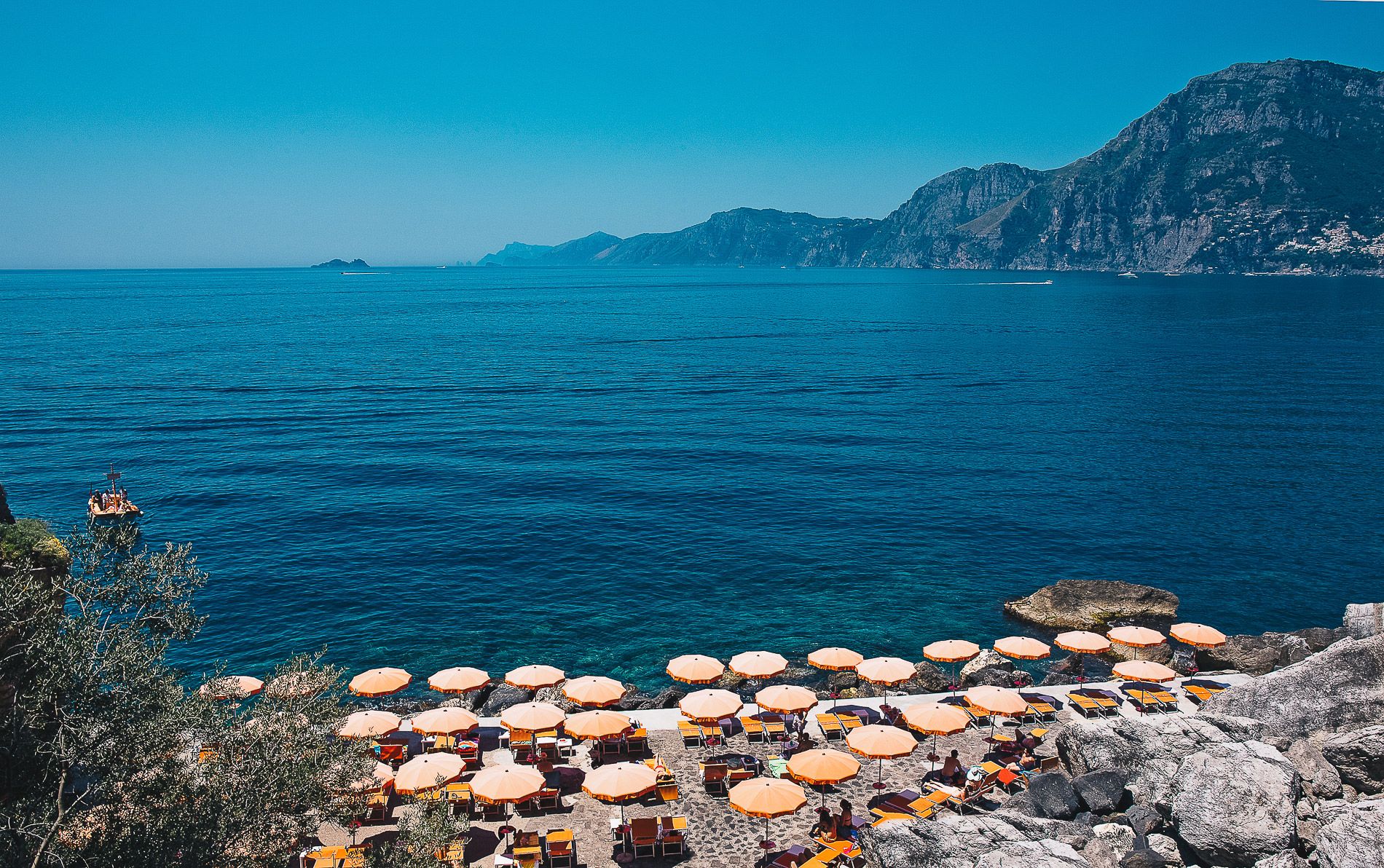 La baignade sur la côte amalfitaine se fait principalement dans de petites criques nichées au pied des falaises. Certaines sont accessibles gratuitement mais la plupart sont payantes car équipées de bains de soleil, de parasols et exploitée par des hôtels ou des gestionnaires privés. L’accès se fait par bateau ou via des escaliers parfois raides. Bien que discrètes et parfois difficiles à localiser, les criques offrent une expérience unique avec des eaux turquoise, une ambiance calme et intimiste donnant la sensation d’être loin de tout. Les efforts pour y accéder sont largement récompensés. A noter que certains hôtels disposant d’une plage l’ouvre parfois aux visiteurs extérieurs moyennant un forfait d’environ 20 € la journée pour un transat, une serviette et un parasol (Un tarif jugé raisonnable comparé à la Côte d’Azur). Renseignez vous à l’accueil de l’hôtel pour être sûr.