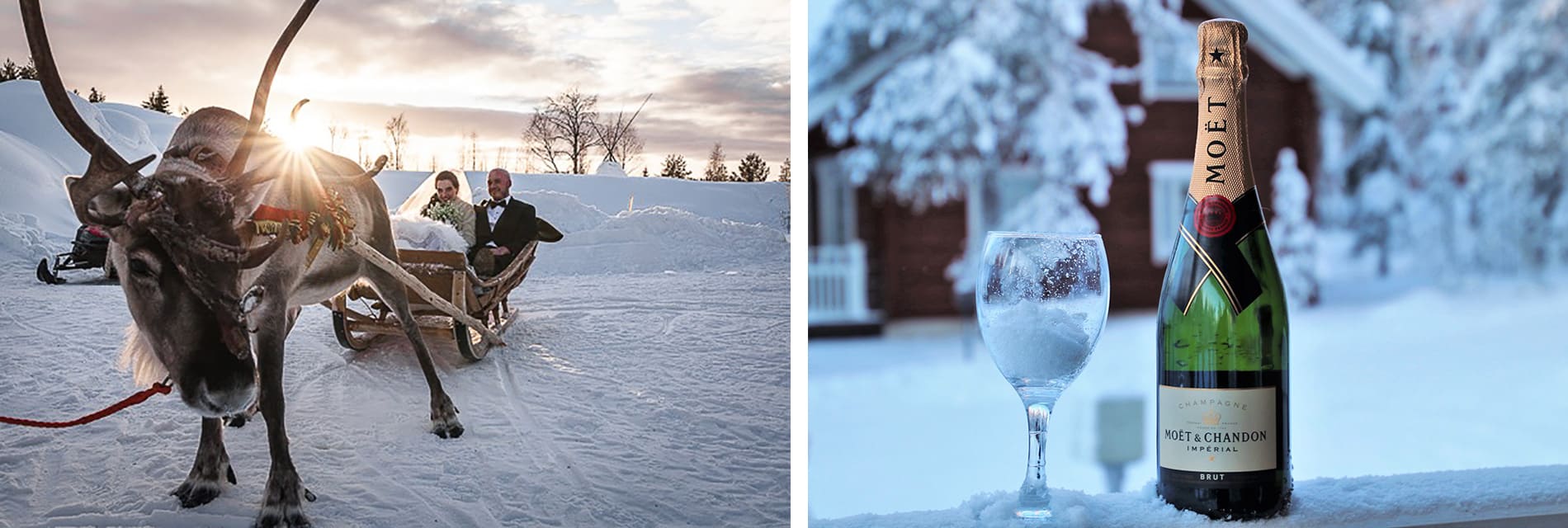 - Les mariés peuvent arriver en traîneau, tiré par un renne ou un cheval, comme dans un conte nordique.