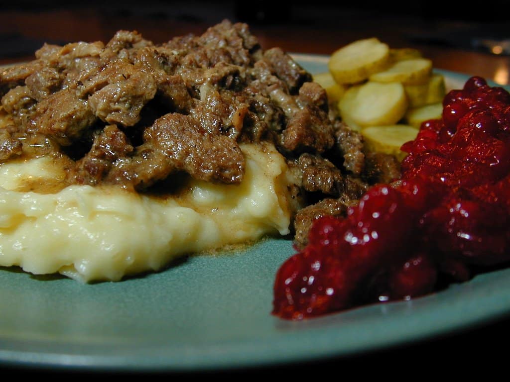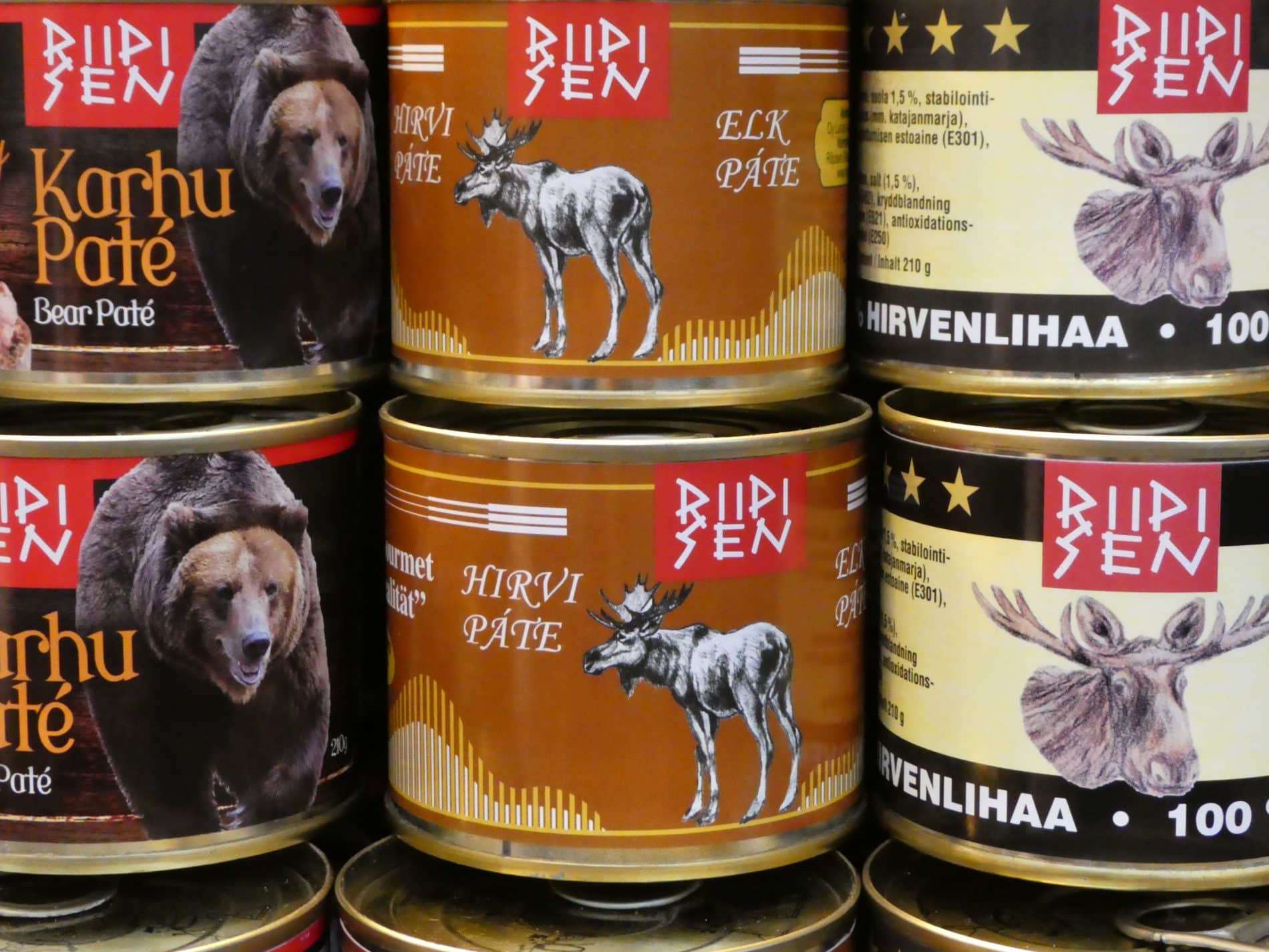 On trouve des rennes dans toute la Laponie, il y aurait plus de rennes que d’habitants pour vous dire! Les finlandais en consomment en ragout, en soupe, en terrine, en saucisson. Je ne suis pas une « viandarde » mais j’ai voulu gouté furtivement cet animal dont la texture rappelle celle du bœuf. Le plat authentique « Poronkäristys » est un ragout de renne, particulièrement apprécié qui se déguste en toutes saisons, accompagné de purée et d’airelles rouges. Quelques informations: la viande de renne est l’une des viandes les plus saines et maigre avec une forte concentration en vitamine B, Oméga 3. Poro signifie « renne » et käristys signifie « sauté ». D’autres viandes sont vendues en supermarché, je vous laisse les découvrir ci-dessous. Et oui, l’ours et l’élan sont des animaux mangés en Finlande!