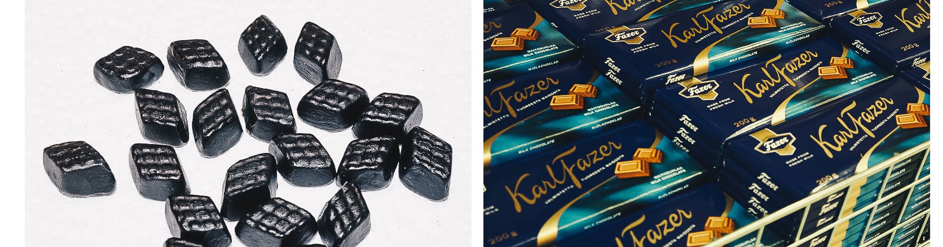 Et pour terminer ce voyage culinaire, vous devez gouter la sucrerie la plus emblématique du pays qu’est le salmiakki, autrement dit la réglisse salée, le chocolat Fazer Blue, une des douceurs préférées des Finlandais. Croyez moi il est très bon.