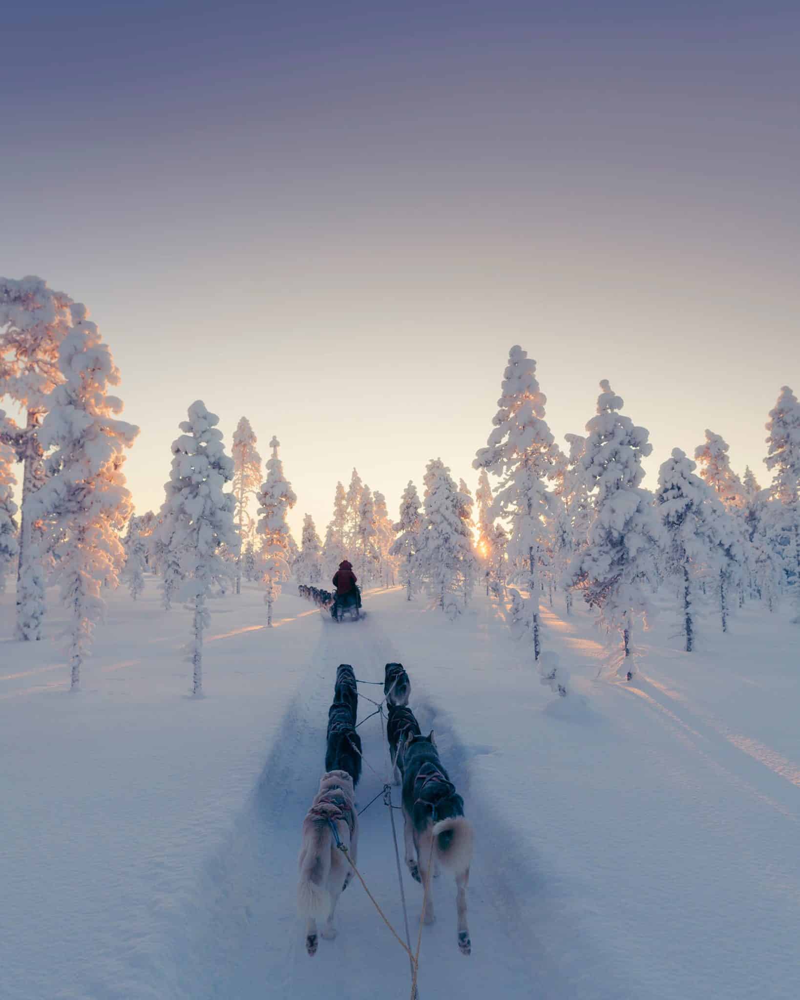 Le chien de traîneau est sans doute l’une des expériences les plus emblématiques. Glisser à travers les forêts enneigées, porté par le souffle des chiens et le crissement de la neige, procure une sensation de liberté incroyable.