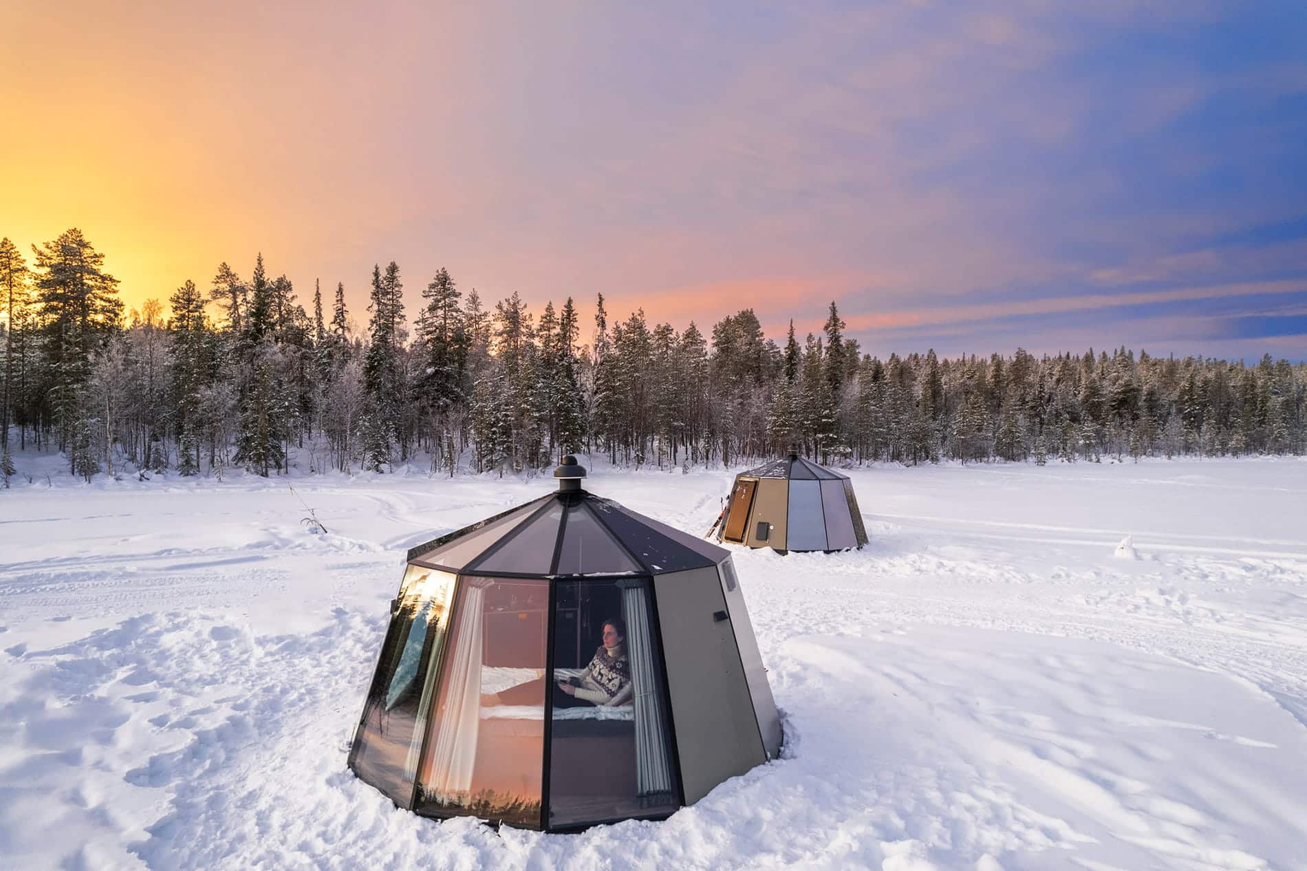 Ce que j’aime particulièrement dans ce type d’hébergement, c’est le silence. Le matin, on se réveille face à la neige, parfois avec une lumière douce qui filtre à travers les arbres. Et le soir, on guette le ciel depuis la terrasse ou à travers la fenêtre, en espérant apercevoir une aurore boréale. Point négatif, les prix sont souvent très élevés.