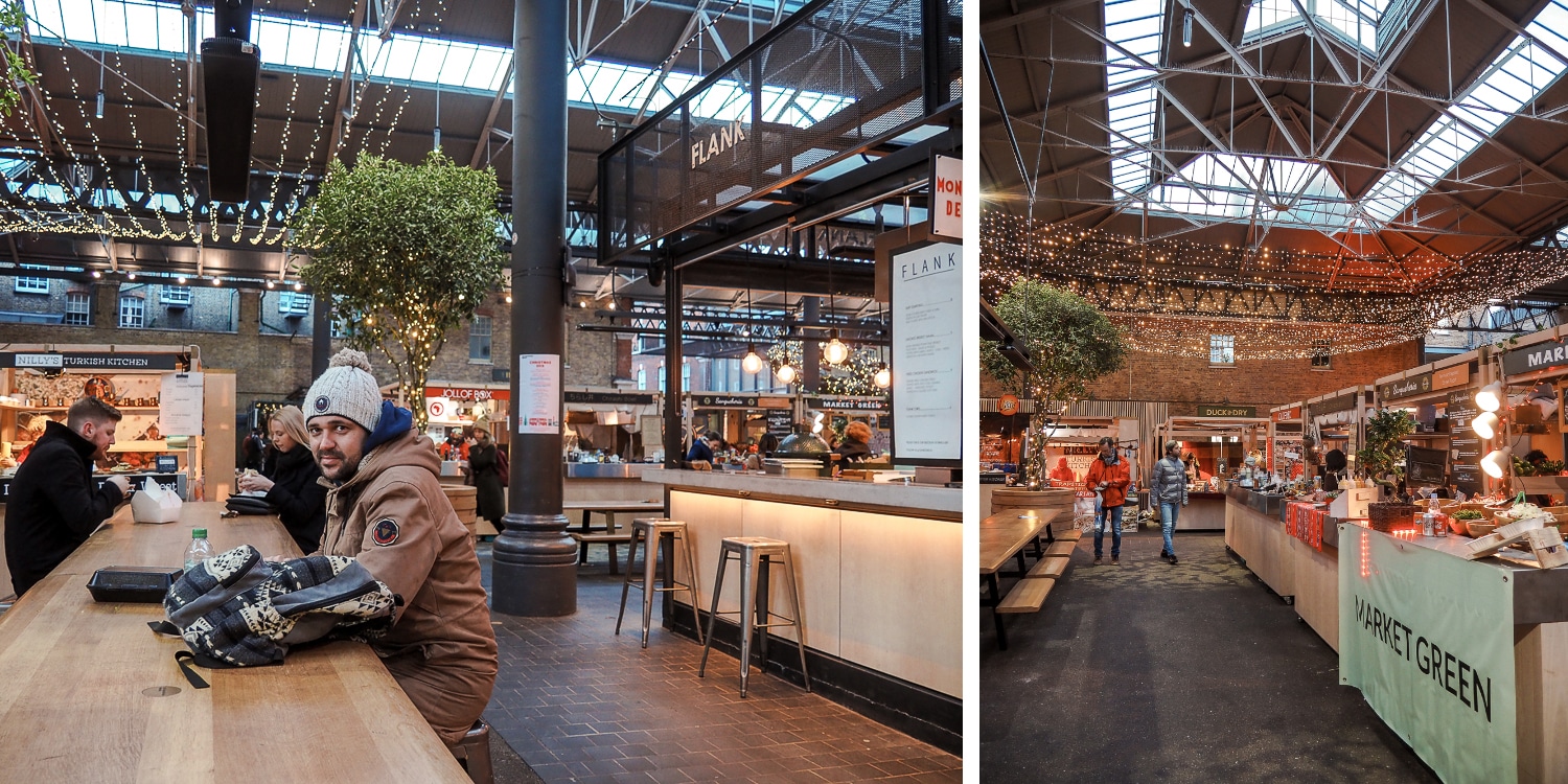Nous avons en revanche et par le fruit du hasard ce même jour de pluie, déniché le « Mare Street Market », lieu magnifiquement décoré où l’on peut venir boire des verres, déjeuner, bruncher et passer du temps avec ses amis. Une énorme halle dans un lieu plus que séduisant bien qu’un peu bruyant. Bus King Edward’s Road.