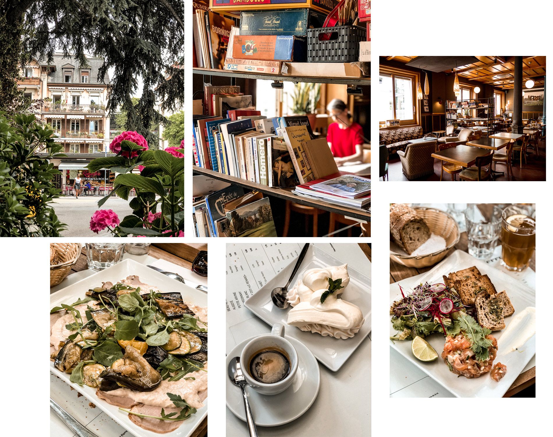 - Pour un déjeuner super sympa, cosy, sous les hortensias, dans une ambiance vintage rétro, direction le Café Grancy, une institution dans le quartier à deux pas de la gare. Métro Towards Ouchy, prendre l’ascenseur puis les escaliers, le restaurant est sur votre gauche. J’ai goûté en entrée leur gaspacho du jour, suivi du tartare de saumon d’Écosse au gingembre et pour terminer, je me suis laissée tenter par la Meringue crème double de Gruyère (très bon mais copieux, vous pouvez même le partager), le dessert local. Pour ceux qui aiment la viande, le Vitello Tonnato est délicieux. Comptez dès CHF 19 pour un plat du jour.