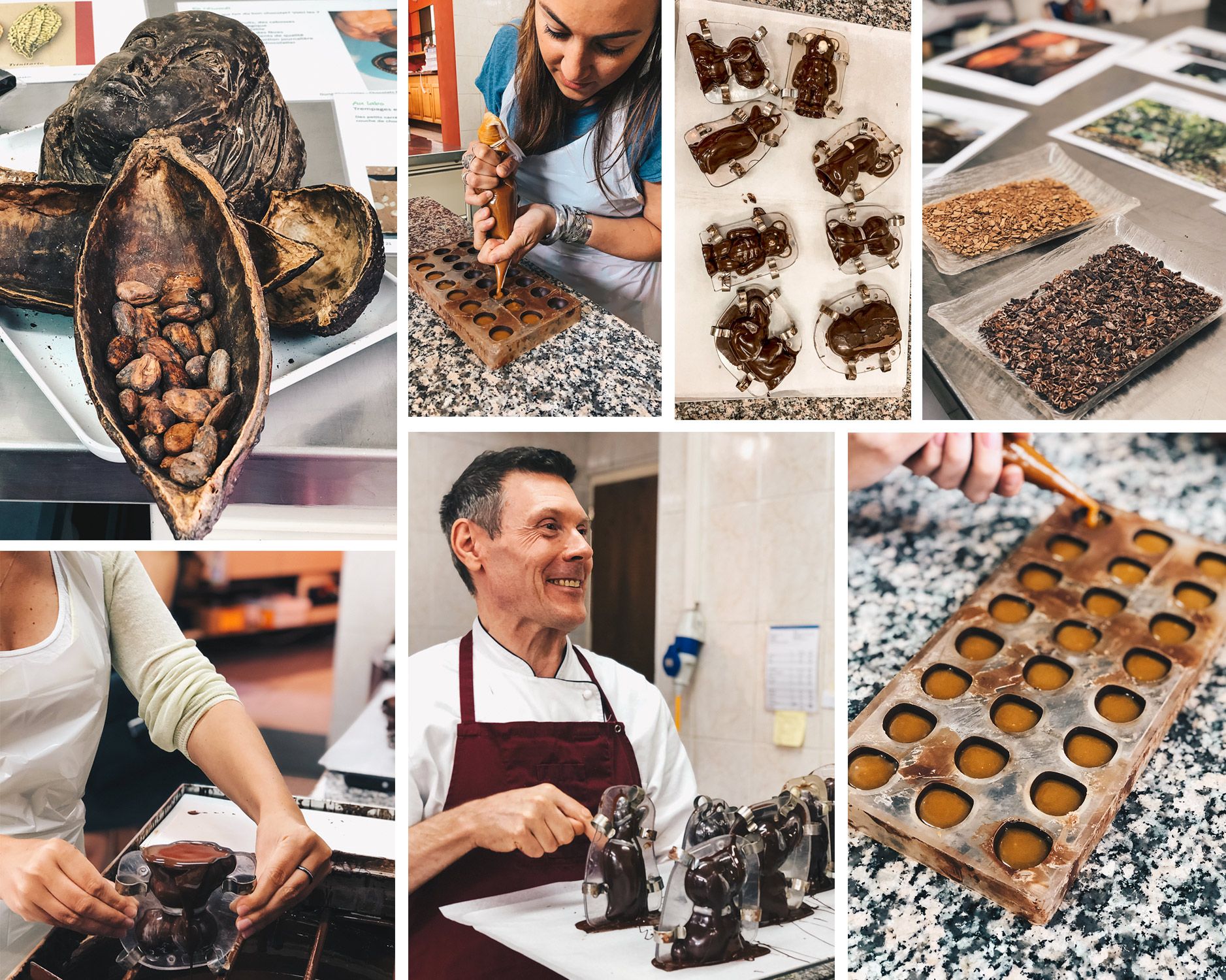 Côté douceur, il y la Meringue crème double dont je vous parle juste en haut, le gâteau à la raisinée que je n’ai pas eu le temps de tester mais aussi tous les délices du chocolat et ça j’ai eu le temps! Direction la Chocolaterie Durig non loin du Café Grancy, proche de la place de la Palud, pour un atelier et une dégustation. La Maison propose une riche sélection de chocolats: pralinés, truffes, plaques de chocolat et même du chocolat cru, assez difficile à trouver mais à tester impérativement si vous aimez le chocolat noir. Il y a très peu de matières grasses, environ 25% donc le chocolat est divinement bon et fondant. Cette chocolaterie artisanale ne travaille ses produits qu’à partir des meilleurs cacaos, certifiés bio et équitables autant que possible, principalement des criollos d’Amérique de sud. Leurs chocolats sont donc pur beurre et à forte teneur en cacao ce qui leur donne un goût bien typé et marqué. Aucun colorant ni agent conservateur ni arôme artificiel ne sont utilisés. Ce genre d’endroit local, avec un savoir faire est donc à encourager car tout est bon! Comptez CHF 35/p pour l’atelier moulage (comme nous avons fait) et il faut un minimum de 10 pax (CHF 300).