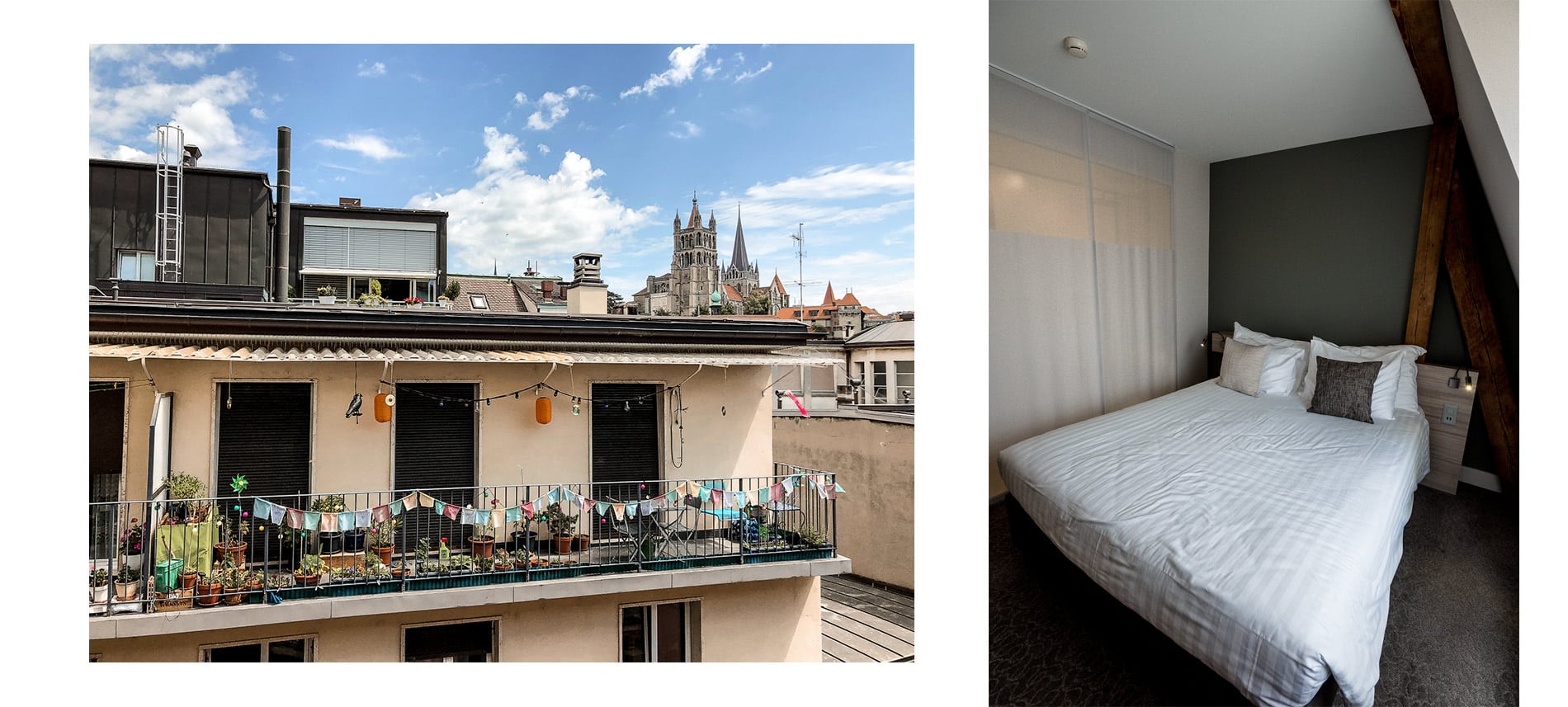 - J’ai testé l’hôtel des Voyageurs au Rue Grand-Saint Jean 19, un charmant hôtel boutique 3* à la gestion familiale en plein centre ville, rénové en 2015 et aménagé dans un immeuble Art Déco. Il est idéalement situé dans une zone piétonne, non loin du centre historique à pied, des commerces et du marché. Les chambres sont propres et certaines possèdent une jolie vue sur la cathédrale. Le petit déjeuner est bon et fourni. C’est un bon rapport qualité prix pour un weekend à Lausanne. Métro: Flon et à 10 minutes à pied de la gare.