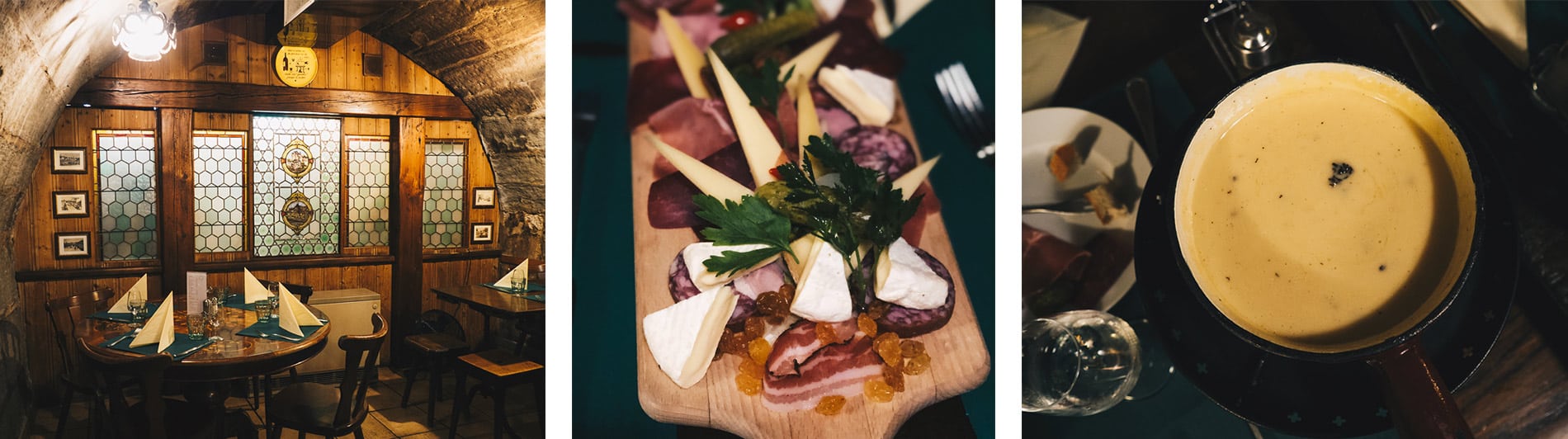 - Dans le plus vieux restaurant de Lausanne établi en 1780 à la Pinte Besson, pour goûter à LA célèbre fondue savoyarde! Et oui, on la mange aussi bien l’hiver que l’été mais son goût est différent, avec un fromage plus fruité je dirais car les vaches ont longuement pâturé et mangé toutes les bonnes fleurs des collines. C’est dans un joli décor de type taverne que je me suis enfilée (bon ok, on a partagé) la traditionnelle fondue savoyarde moitié-moitié (moitié gruyère et moitié vacherin fribourgeois) mais aussi celle aux morilles et au cognac devenue ma favorite. Comptez environ 25€ à 30€ la casserolle à partager et c’est suffisant.