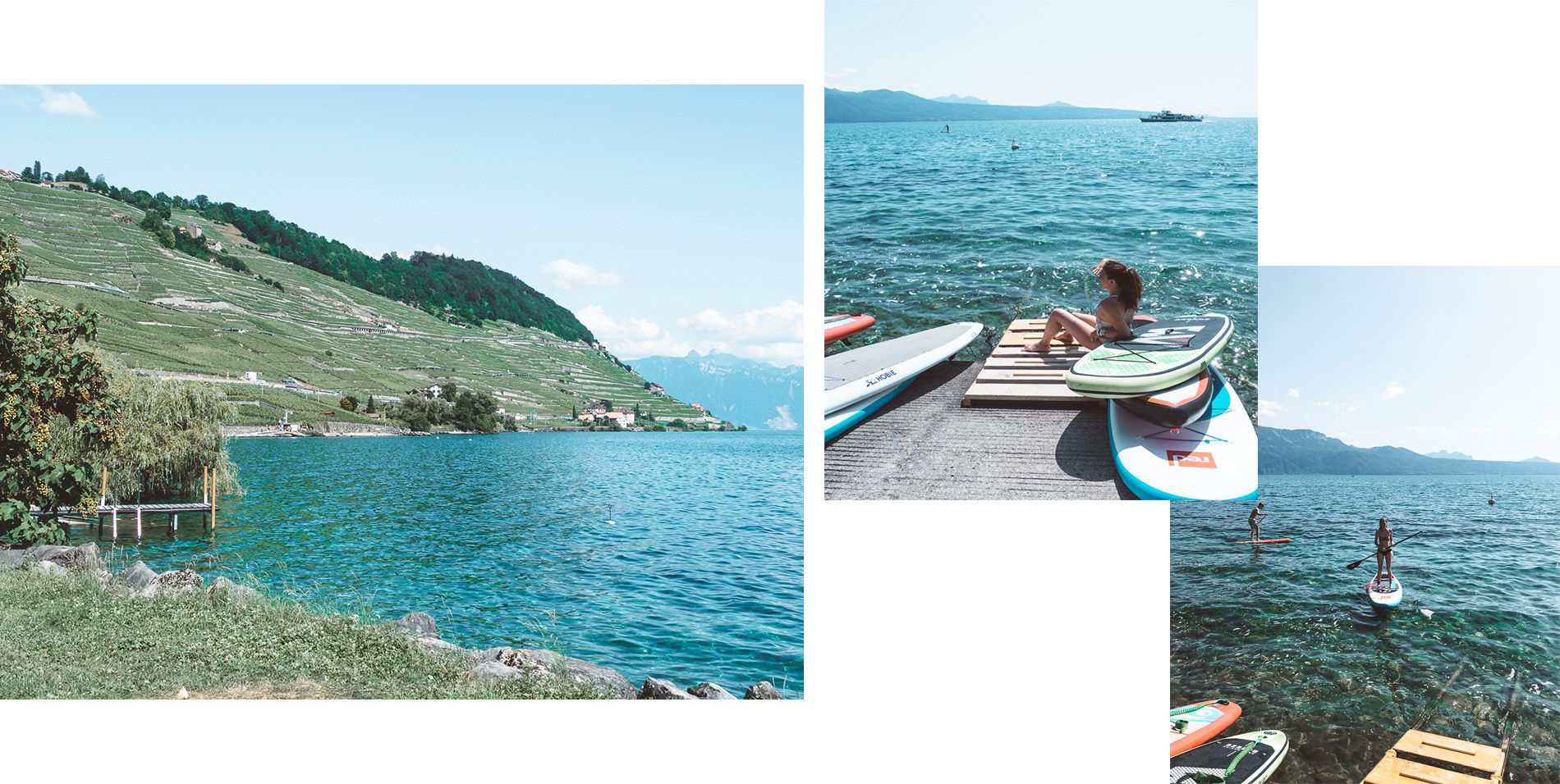 Pourquoi venir de ce côté la ? tout simplement car il y a moins de monde qu’en centre ville et que vous pourrez en toute simplicité, profiter de la plage de Moratel, une des plus belles plages du Lac Léman. Que vous soyez en mode découverte, sportif, ludique ou que vous ayez juste envie de « chiller », les stand up paddles sont une bonne manière d’apprécier le lac et son eau pas si fraîche que ça le jour où nous y étions. Les eaux du Lac s’étaient réchauffés avec la canicule et c’était très agréable de s’allonger sur ces planches face à cette vue des vignobles en contre bas et ces petites criques peu convoitées! Les paddles se louent à l’heure ou à la journée ce qui vous permet de combiner baignade et activité sportive.