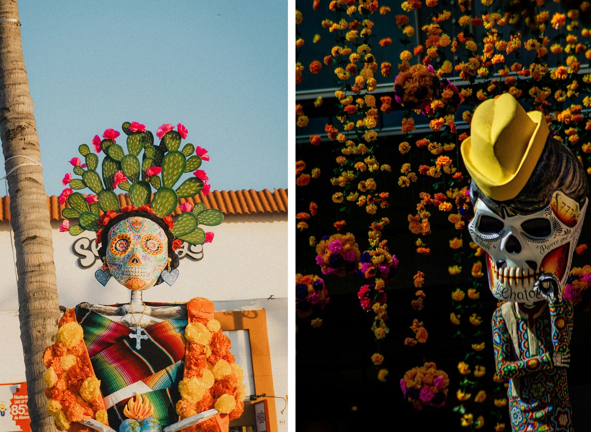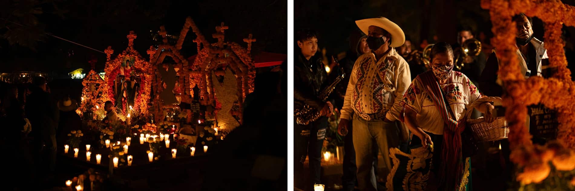Le cimetière s’illumine de milliers de bougies, les cloches sonnent, et les ruelles se remplissent d’une lumière dorée qui semble suspendre le temps. L’ambiance est plus intime, mais tout aussi intense : c’est le Mexique profond, celui des traditions vivantes et du cœur.