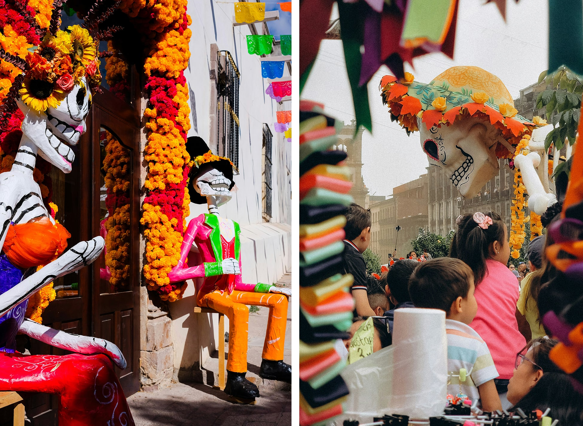 Les rues du centre historique se couvrent d’autels colorés, les musées et galeries exposent des œuvres inspirées de la mort, et même le Zócalo, la grande place de la ville, se transforme en un immense hommage collectif. C’est à la fois impressionnant et profondément émouvant.