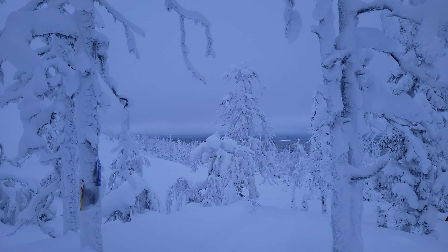 Noël, la Laponie est en période de kaamos, la nuit polaire. Le soleil ne se lève pas et reste sous la ligne d’horizon. En revanche, il ne fait pas nuit en continu : une courte luminosité grise et bleutée apparaît généralement en fin de matinée et en début d’après-midi, approximativement entre 11h et 13h, grâce à la réflexion de la lumière sur la neige.