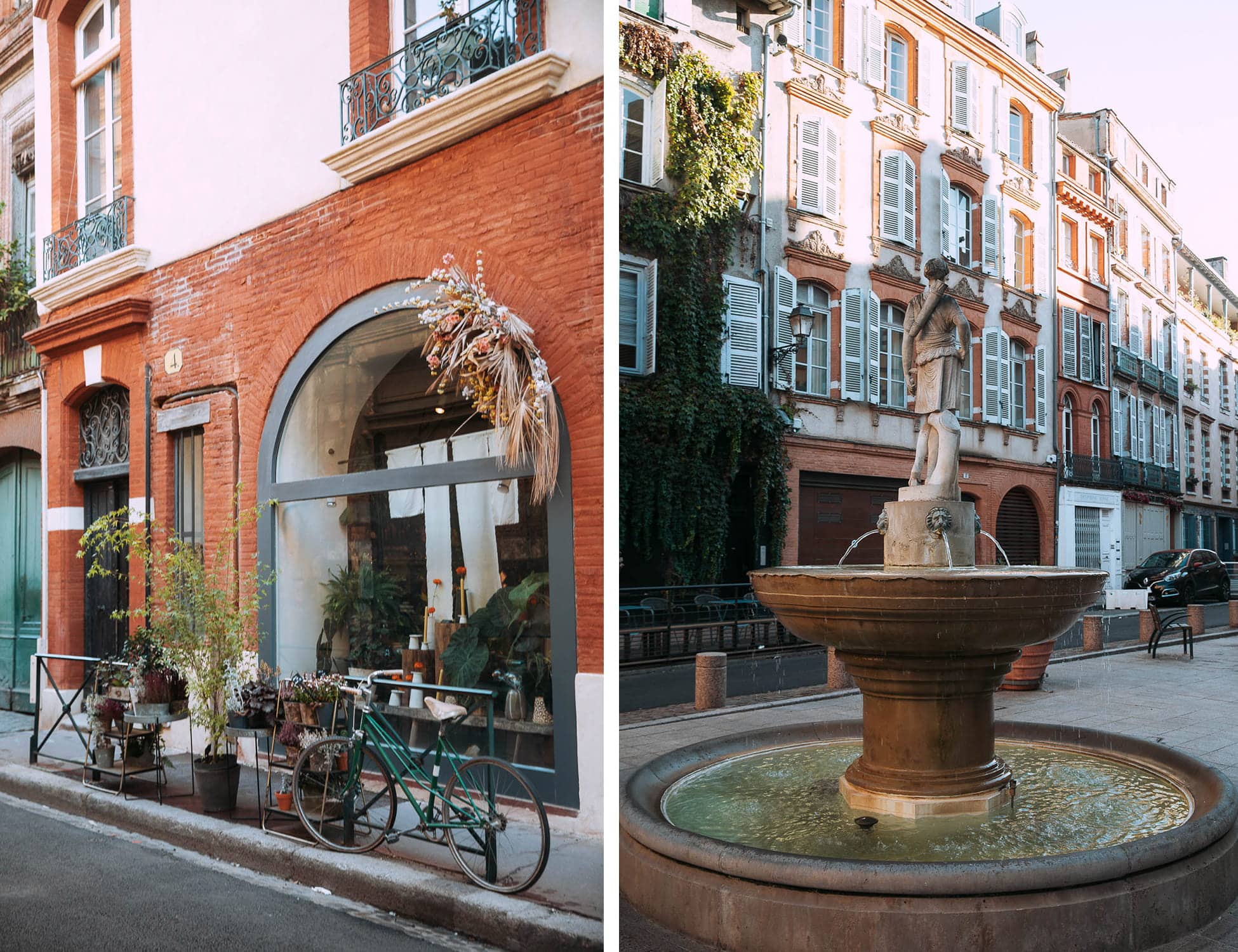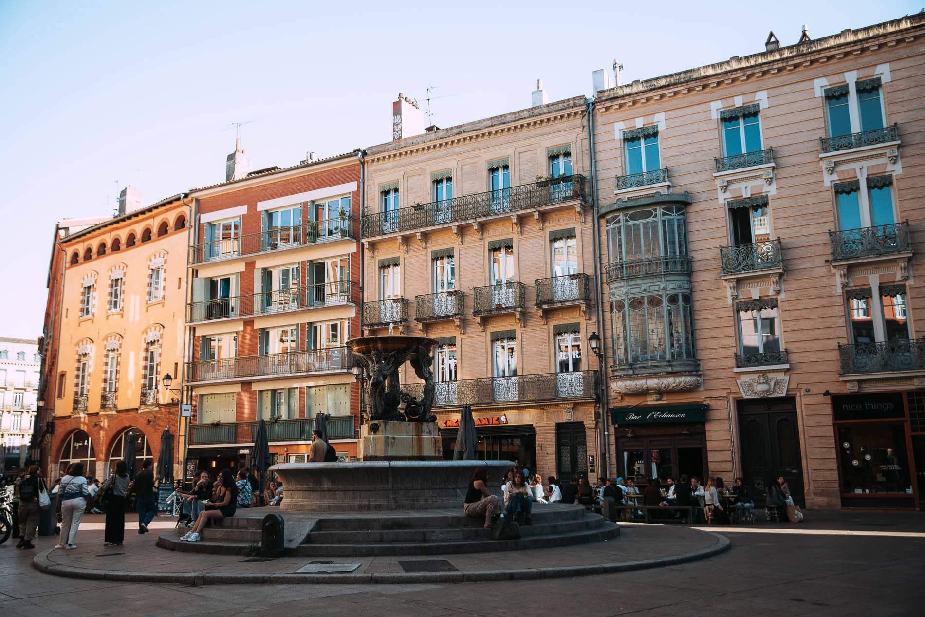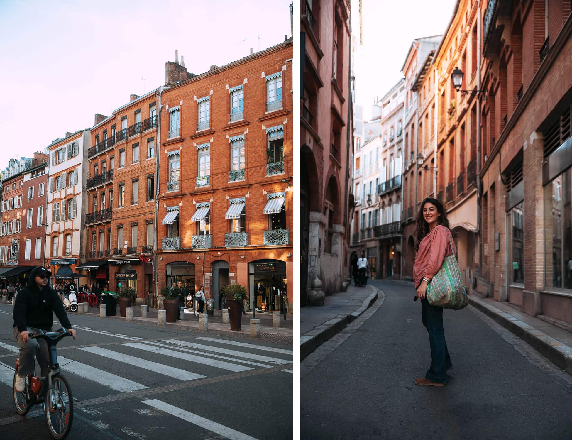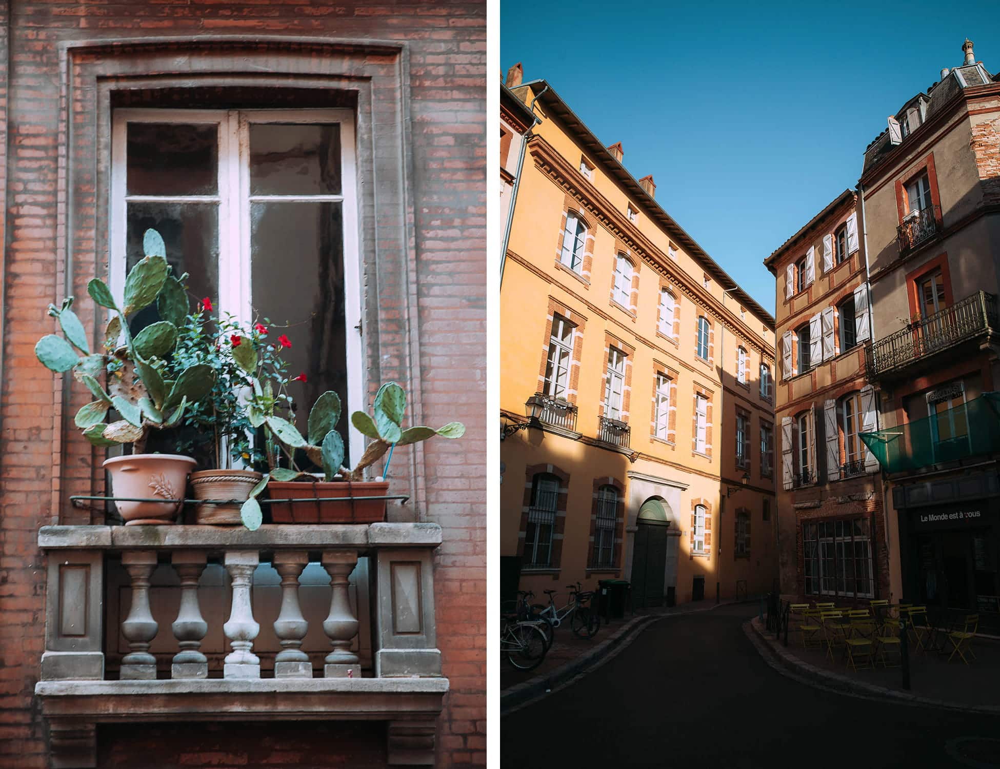 Mention spéciale à la Rue Merlane, ultra photogénique en fin de journée, et à la Place Sainte-Scarbes, plus intimiste, nichée dans le quartier des Antiquaires. Un coin calme, loin de l’agitation, qui révèle une autre facette de Toulouse. C’est un vrai coup de cœur pour moi : on y trouve de nombreuses galeries, des cafés et de jolies boutiques bohèmes.