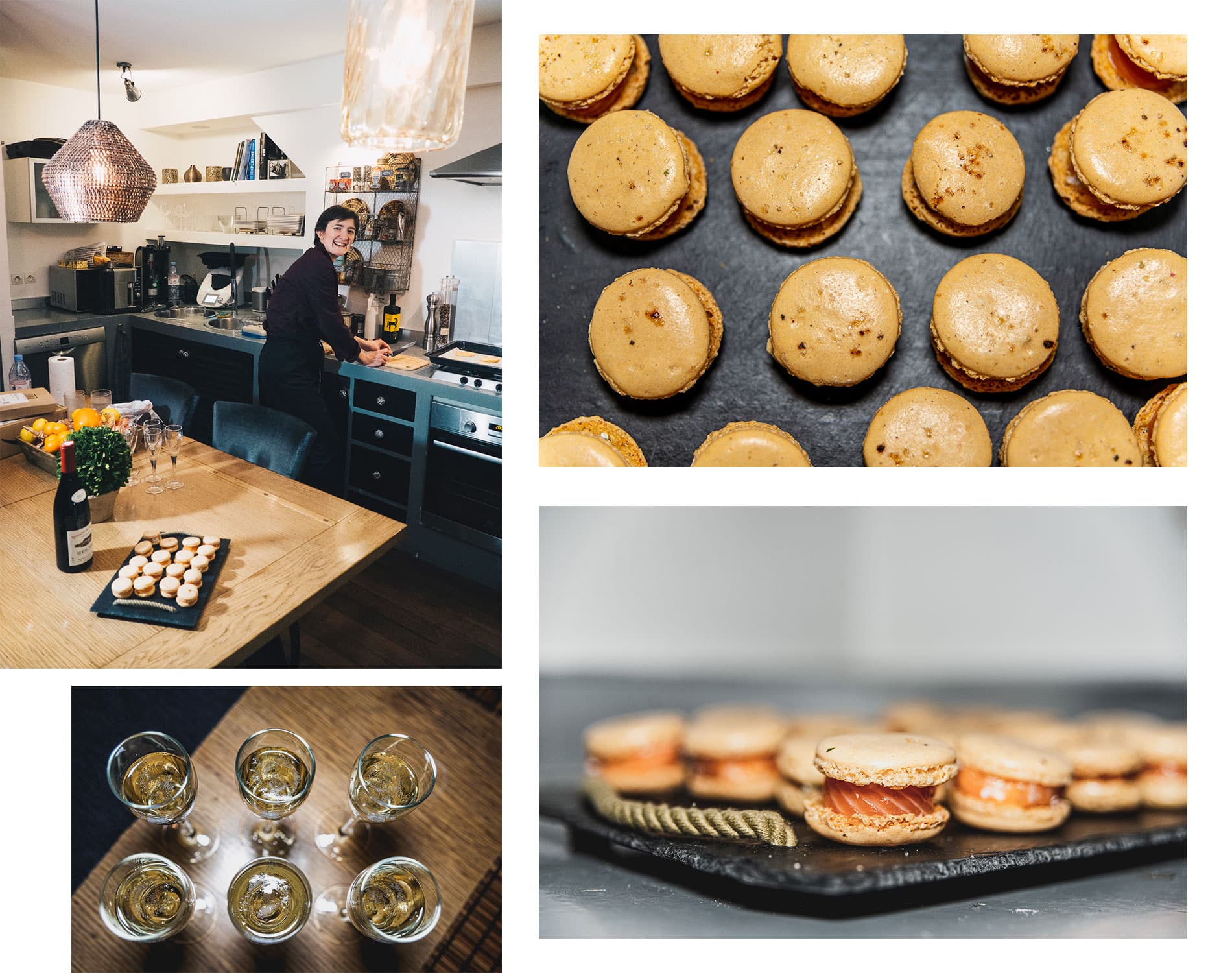 | Amuse-bouche: Macarons saumon fumé, fromage de chèvre et pomme verte