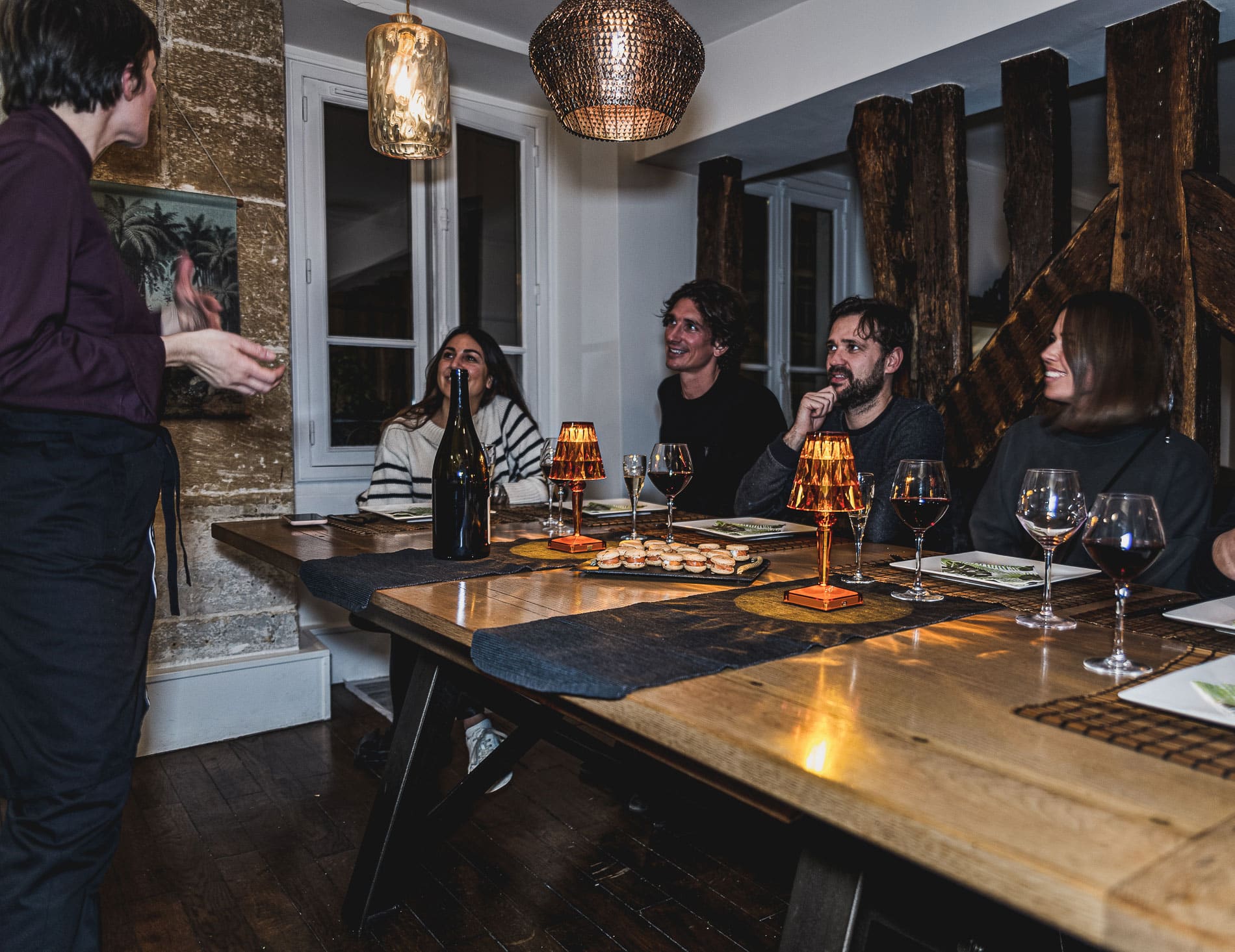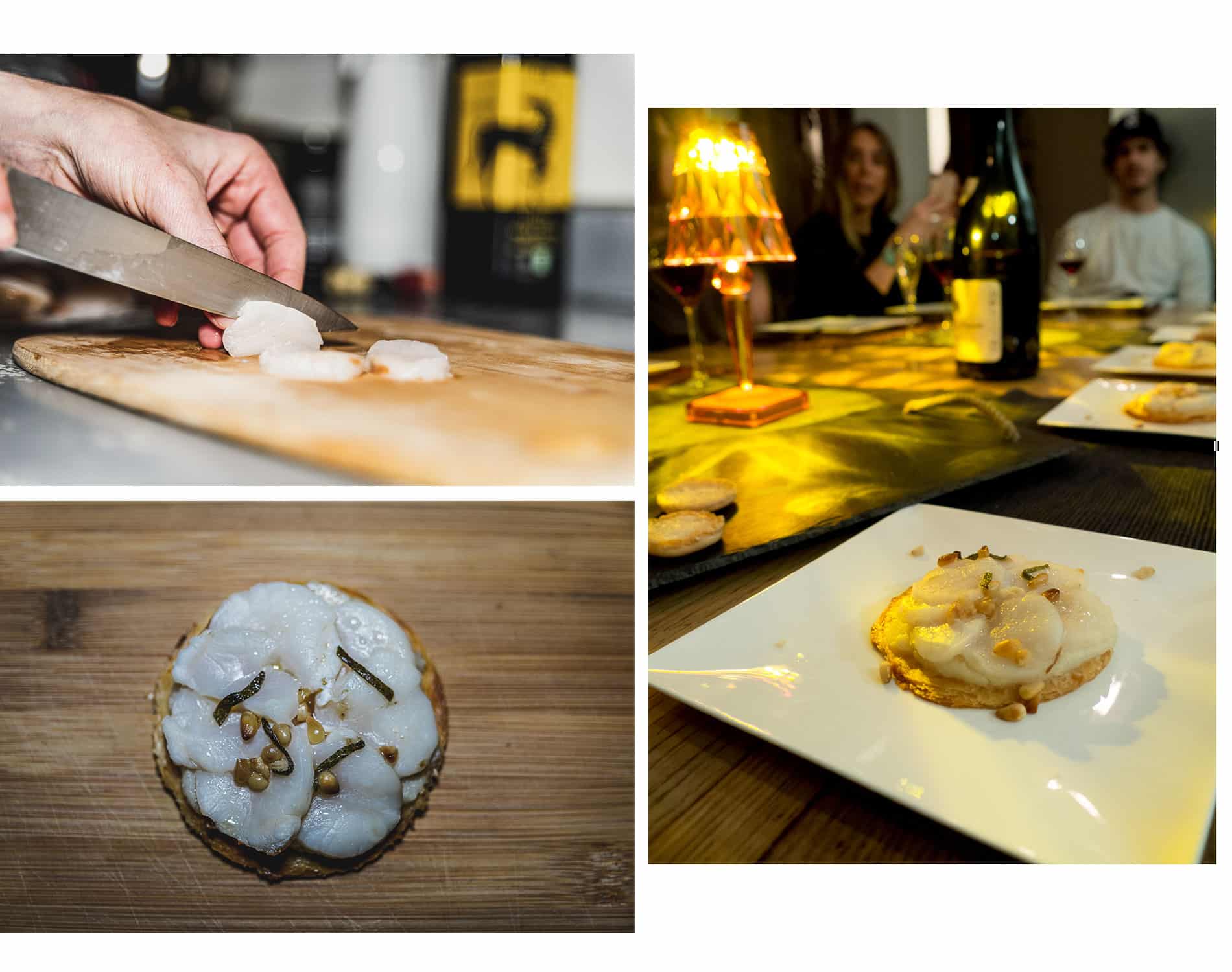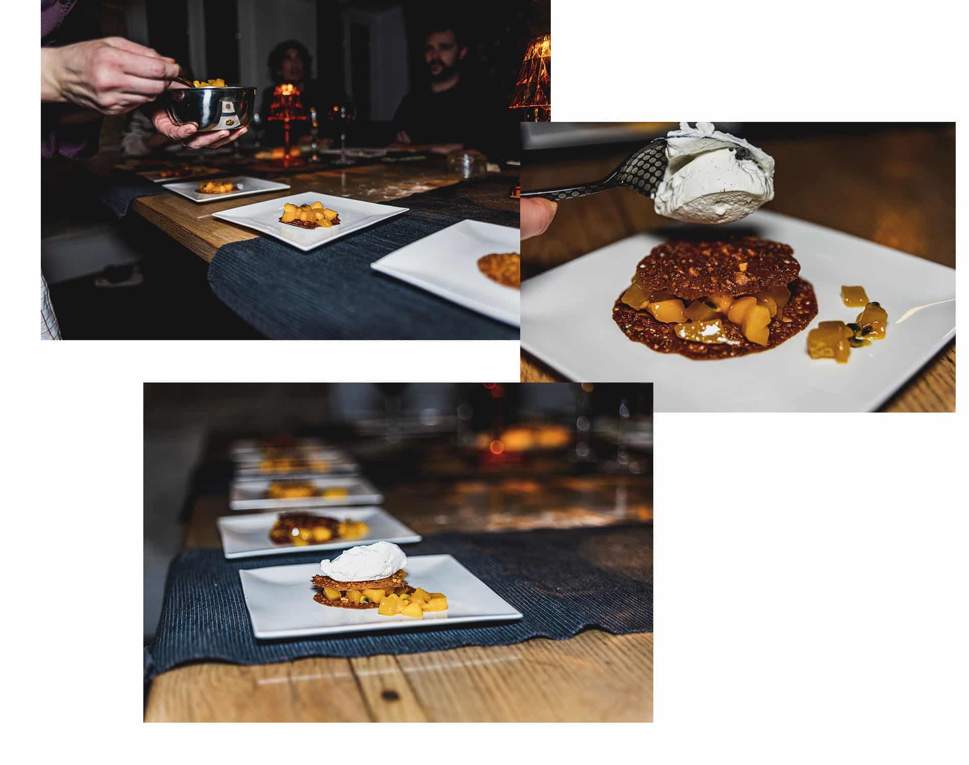 Nous avons vraiment apprécié cette expérience. Plutôt que de se retrouver au restaurant pour une fois, nous avons dîné chez des amis. Même si le concept n’est pas forcément d’échanger avec le chef, nous, on a dérogé à la règle. Nous avons fait les curieux, nous lui avons posé plein de questions et nous avons discuté de son parcours avec la chef Marie Joséphine.
