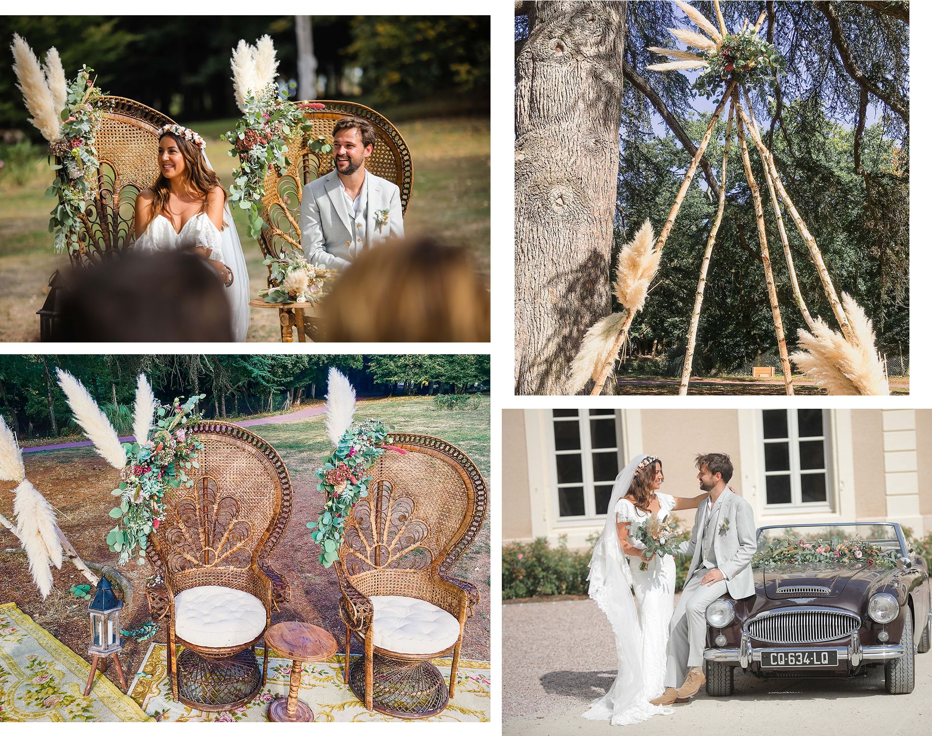 Il est tout à fait possible de faire ses propres bouquets mais pensez à la main d’œuvre qu’il vous faut derrière durant l’installation. Nous l’avons fait sur une partie mais nous avons aussi laissé Camille travailler car encore une fois, elle a l’habitude et connaît parfaitement le terrain et notre lieu de mariage.